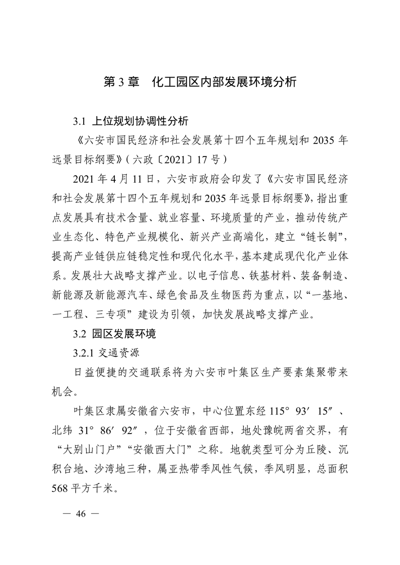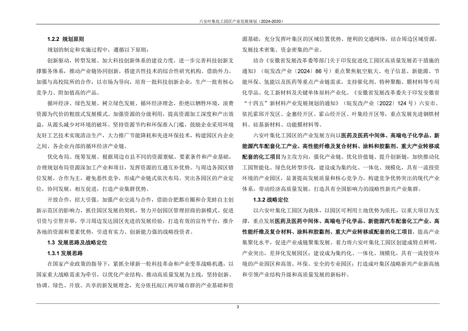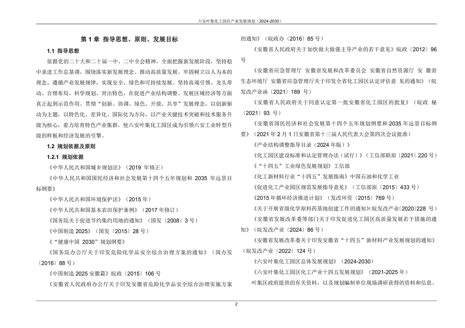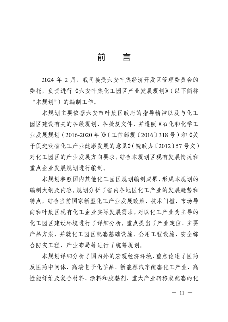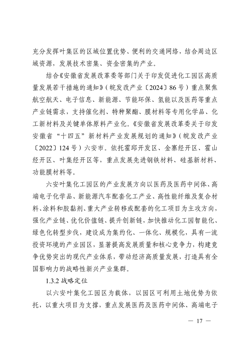 2. 《六安市叶集化工园区产业发展规划(2024-2030)(征求意见稿)》