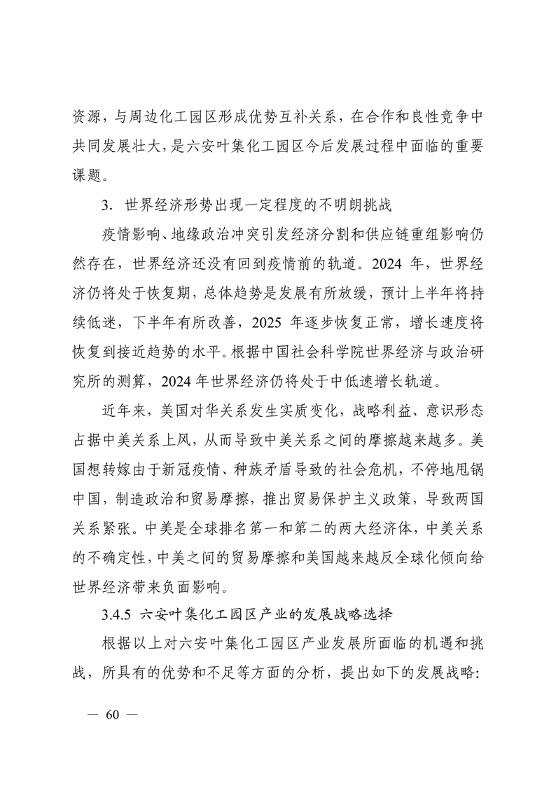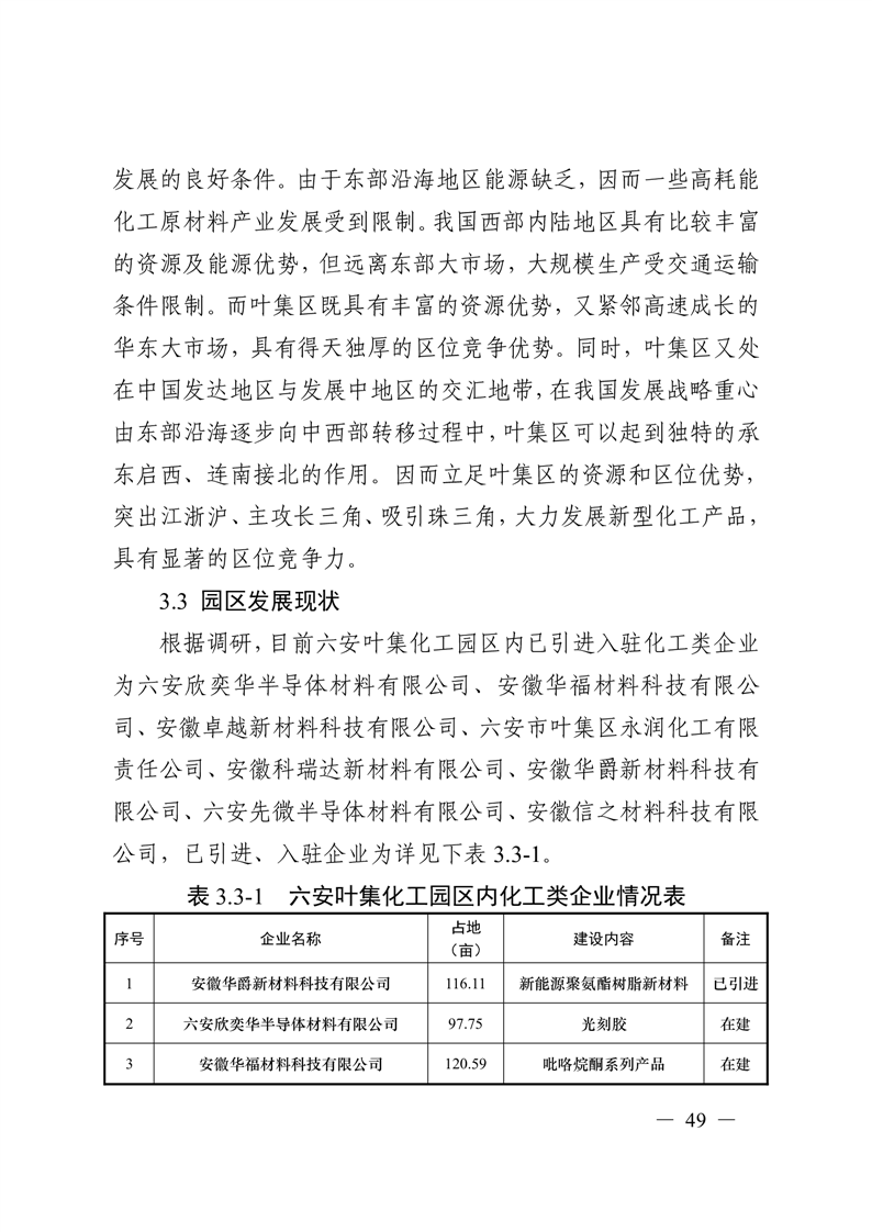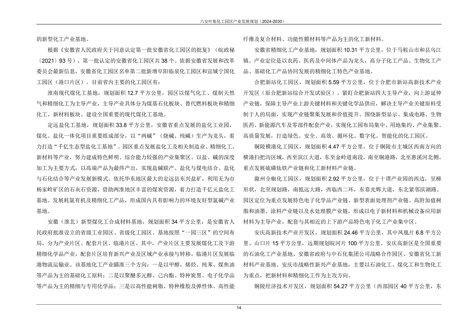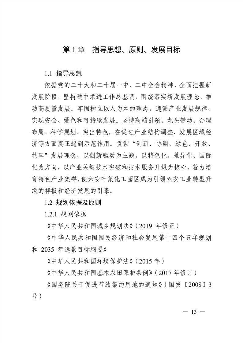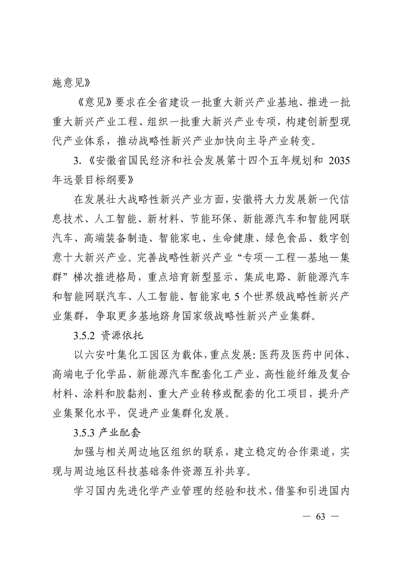 2. 《六安市叶集化工园区产业发展规划(2024-2030)(征求意见稿)》