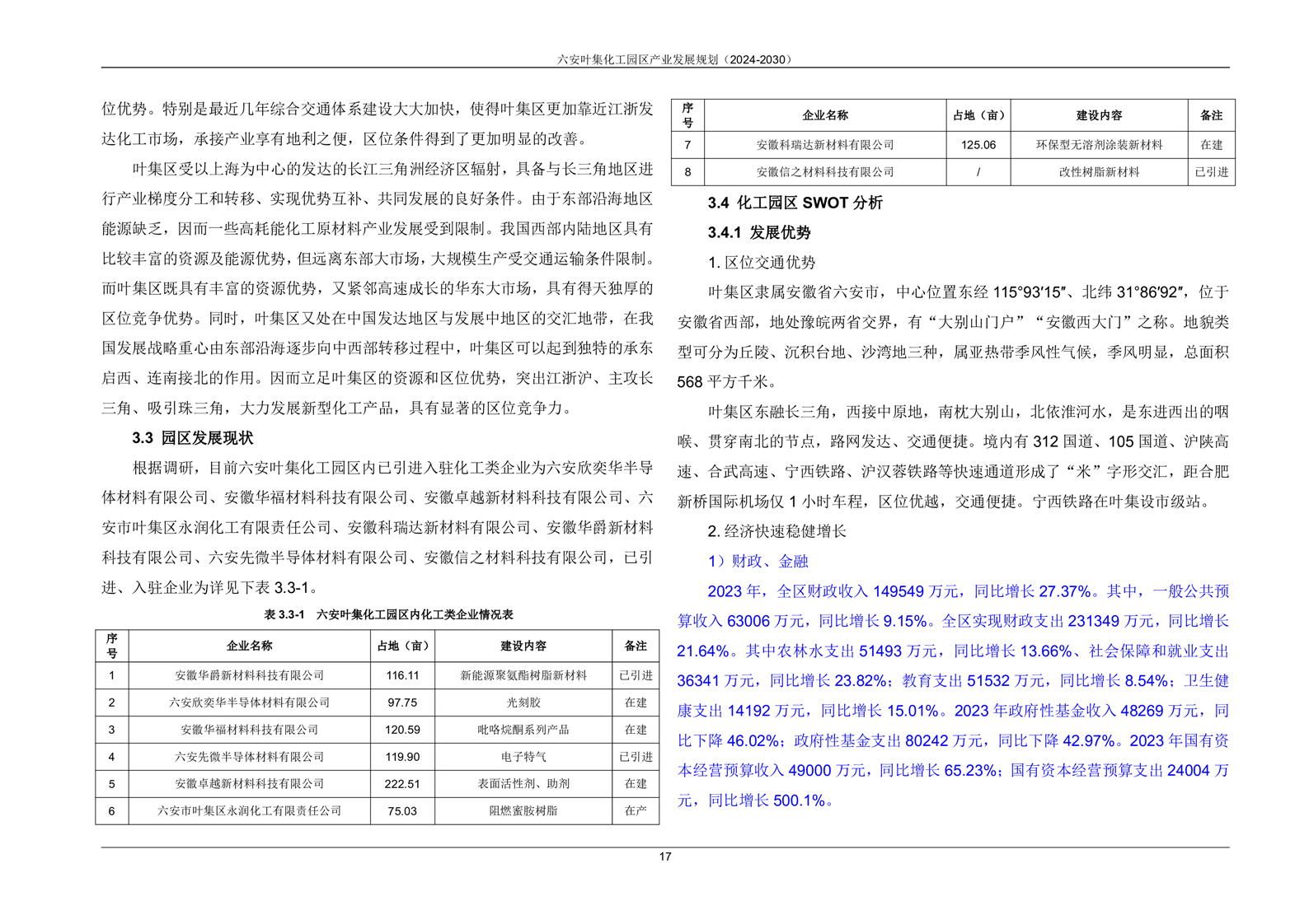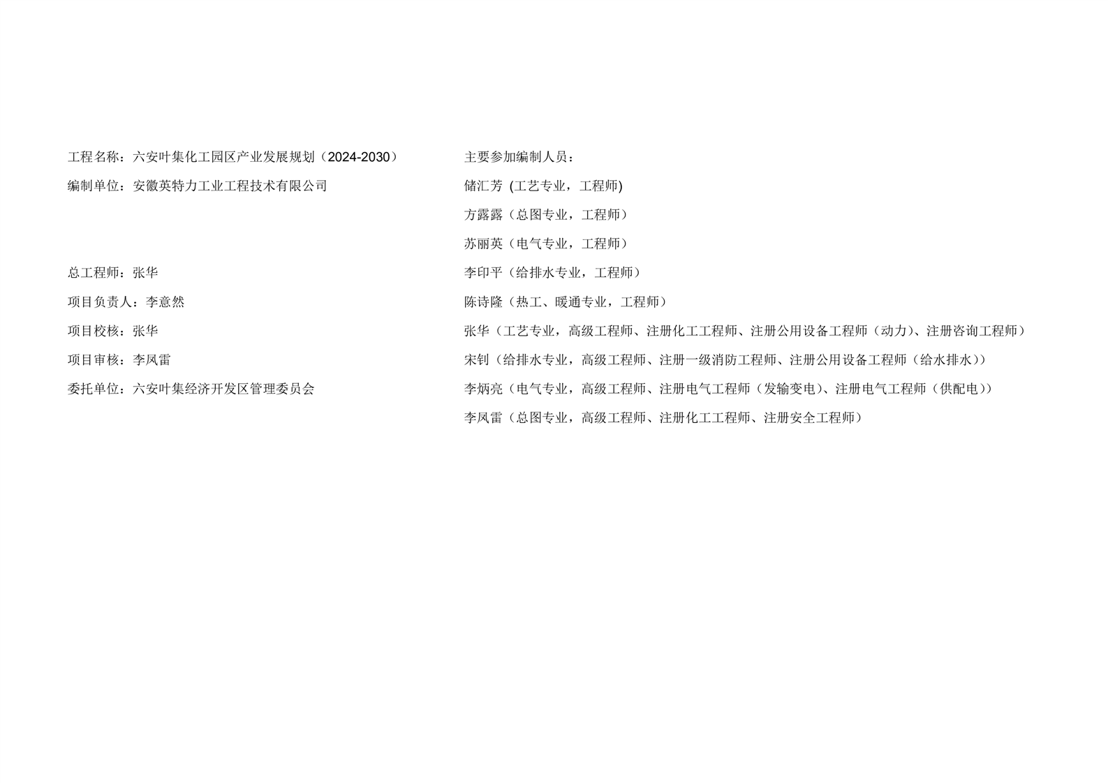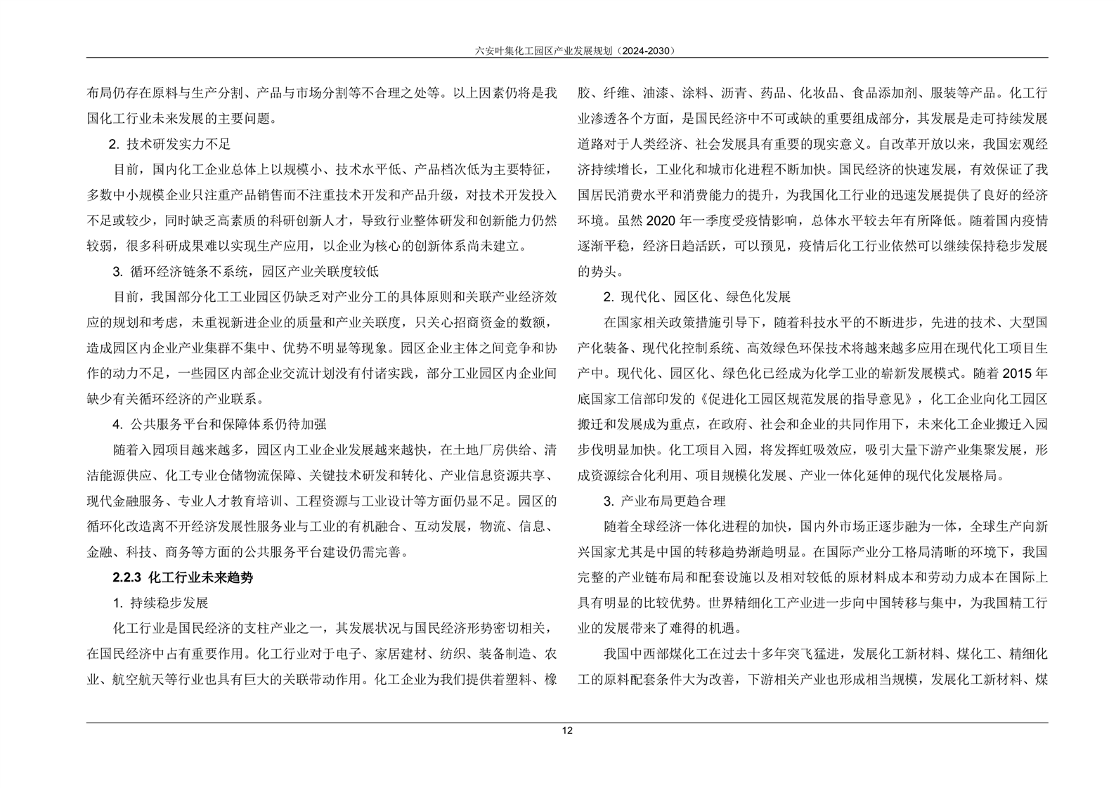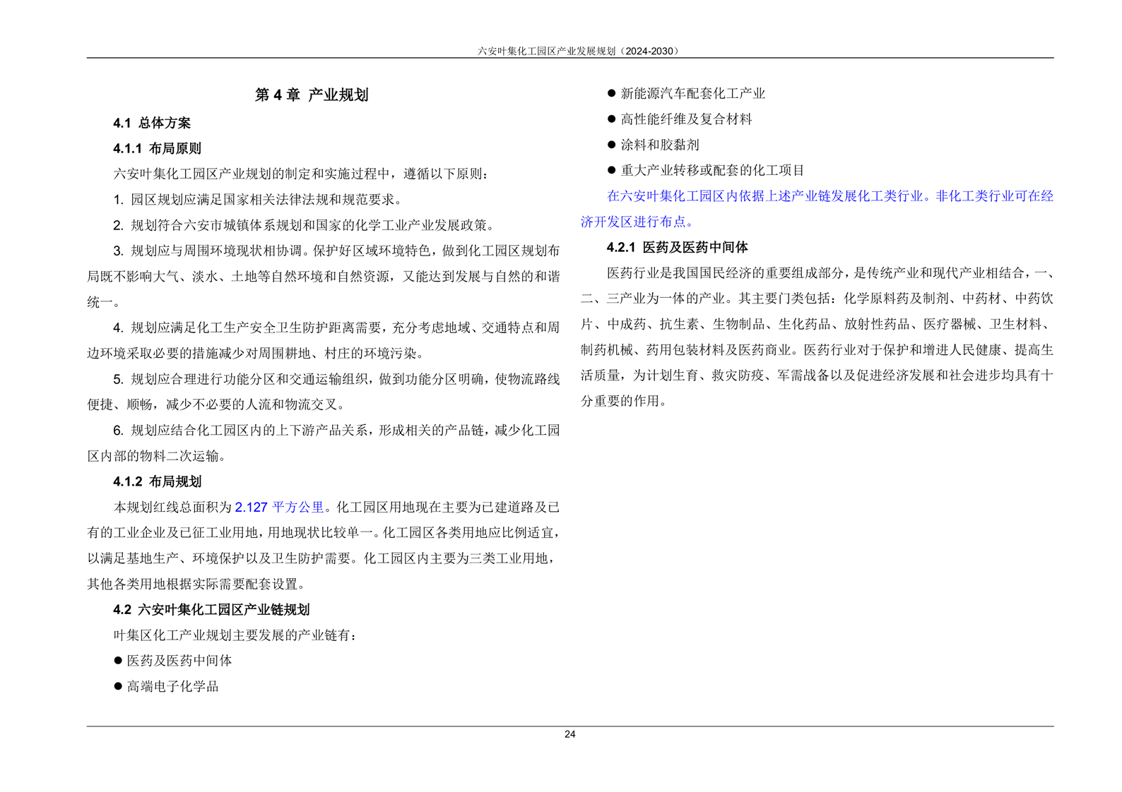 2. 《六安市叶集化工园区产业发展规划(2024-2030)(征求意见稿)》