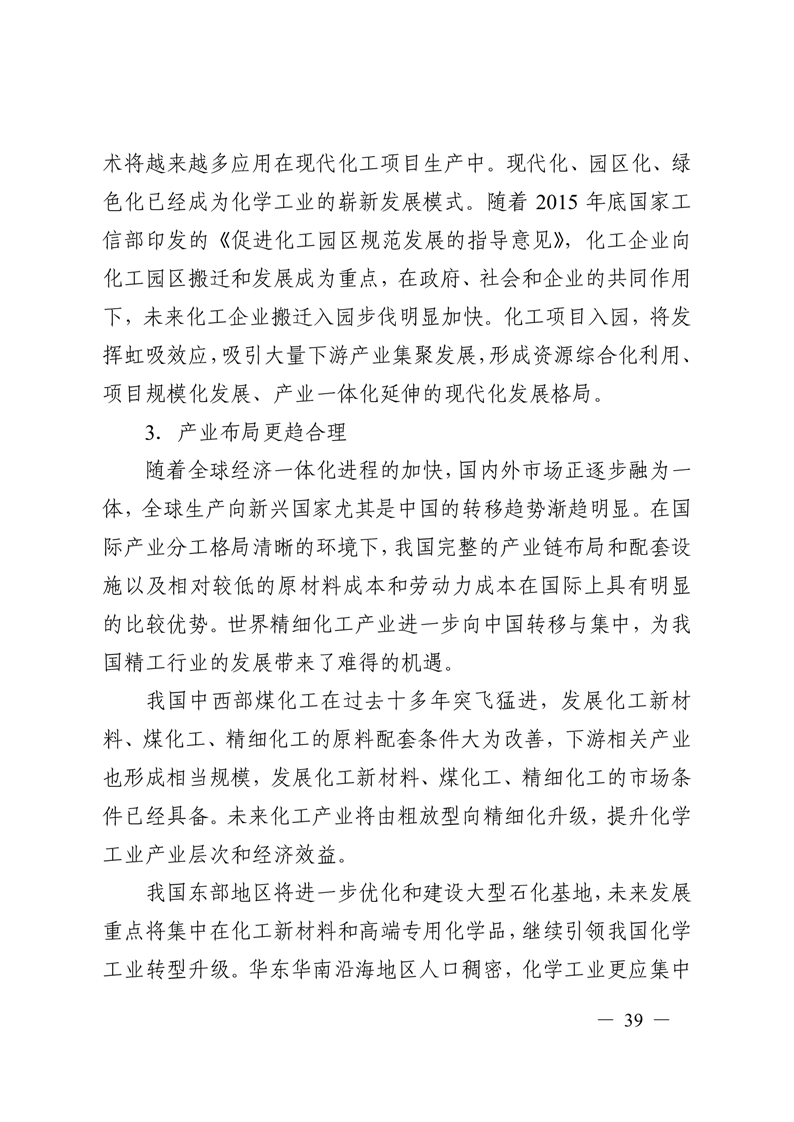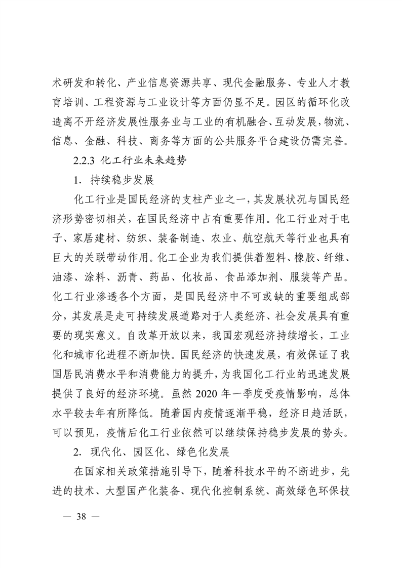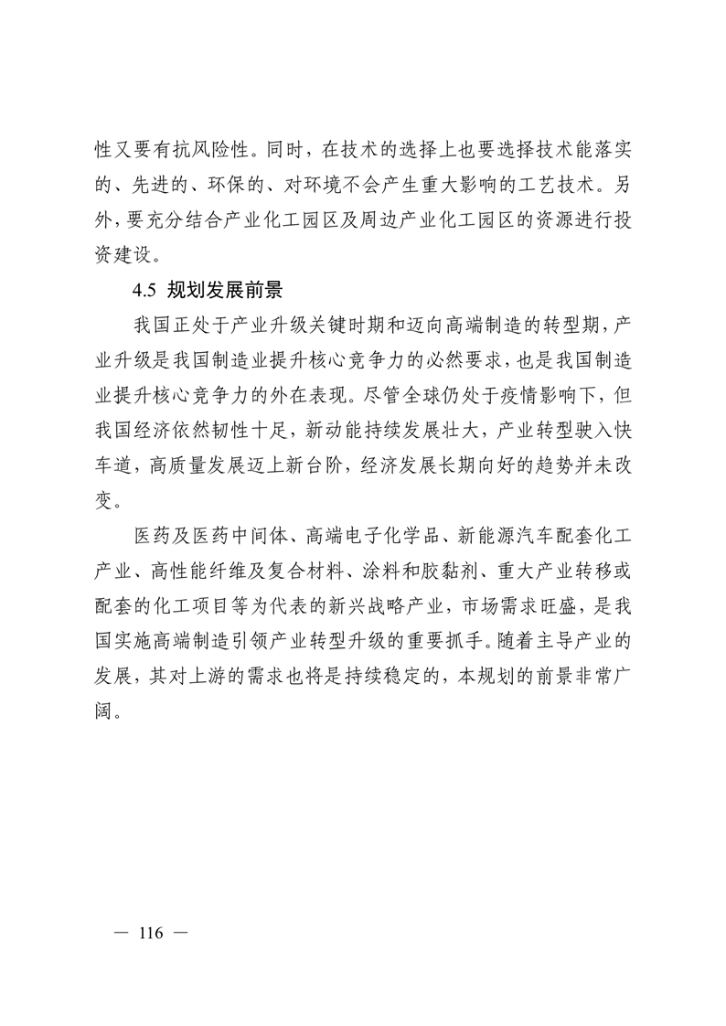 根据园区现状和产业发展需要,园区产业规划拟调整为:医药及医药中间体、高端电子化学品、新能源汽车配套化工产业、高性能纤维及复合材料、涂料和胶黏剂、重大产业转移或配套的化工项目。