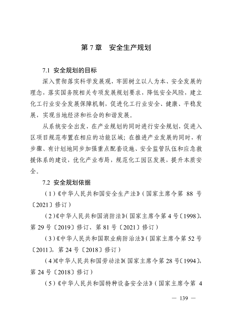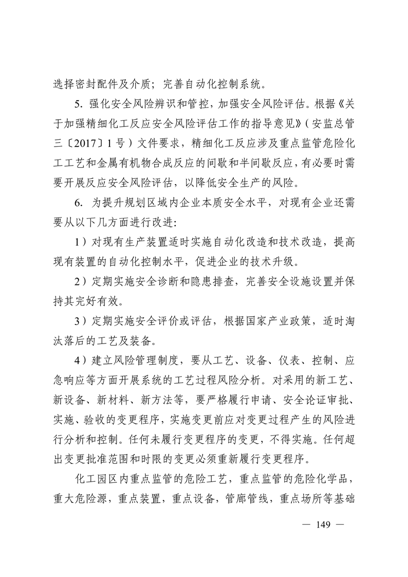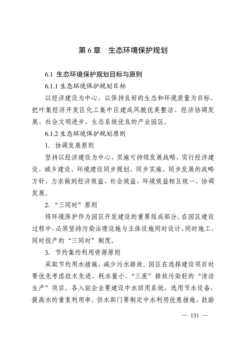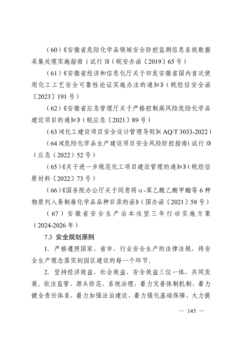 《安徽发展改革委等部门关于印发安徽省化工园区认定办法(试行)的通知》(皖发改产业〔2022〕355 号)规定:化工园区管理机构应编制总体发展规划和产业发展规划。产业发展规划应结合当地土地资源、产业基础、水资源、环境容量、城市建设、物流交通等基础条件进行编制,符合国家化工产业政策和所在地区生态环境分区管控要求及化工产业发展规划。《应急管理部关于印发化工园区安全风险排查治理导则》(应急〔2023〕123 号)规定:化工园区应编制化工园区总体规划和产业规划,总体规划应包含安全生产和综合防灾减灾规划章节或独立编制专项规划。化工园区应严格根据化工园区总体规划和产业规划,制定并落实适应区域特点、地方实际的“禁限控”目录和项目安全准入条件,及时动态更新。化工园区的项目准入应有利于形成相对完整的“上中下游”产业链和主导产业,实现化工园区内资源的有效配置和充分利用,安全风险可控。2021 年 10 月,根据化工园区认定需要,经济开发区管委组织编制了《六安叶集化工园区化工产业十四五发展规划(2021-2025 年)》。2024 年 1 月,经济开发区管委委托编制单位,根据相关规定和整改要求,结合本地实际,修编新版《规划》。