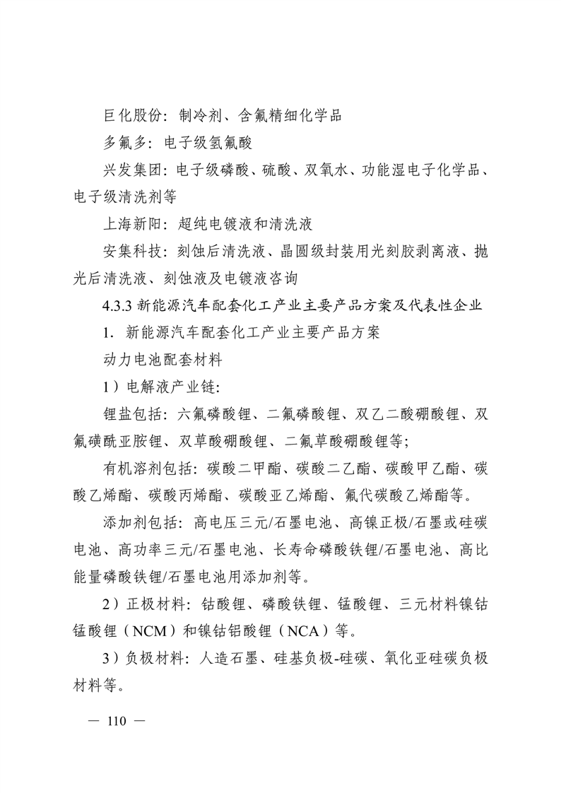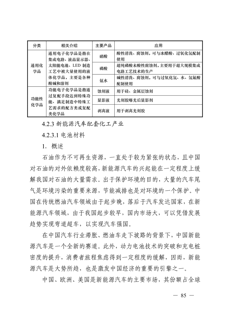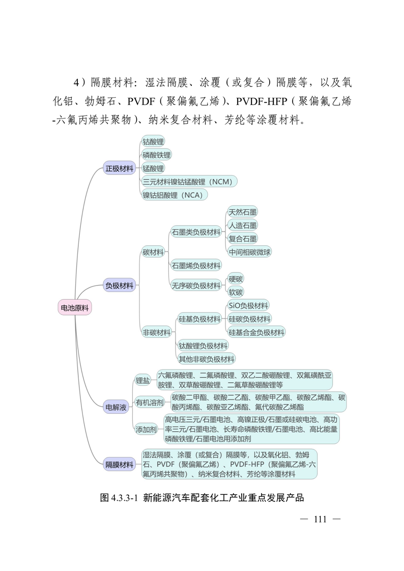 新能源汽车配套化工产业主要发展:①动力电池配套材料,如电解液、正极材料、负极材料、隔膜。②电池拆解或回收。