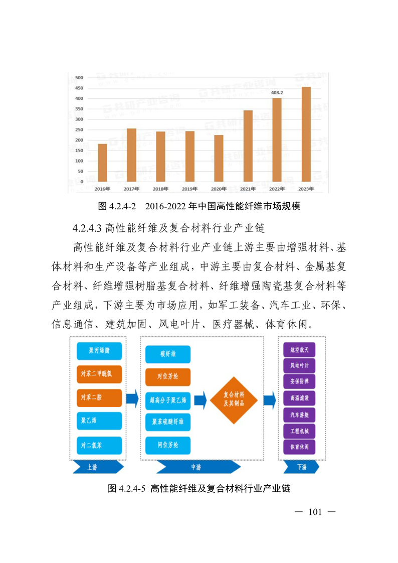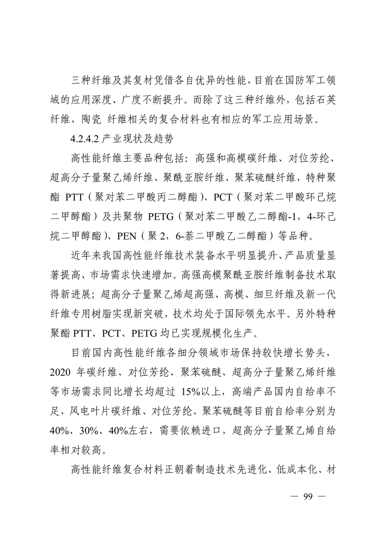 高性能纤维及复合材料主要发展:①增强材料、基体材料、如碳纤维、芳纶纤维、树脂基体等。②复合材料、金属基复合材料、纤维增强树脂基复合材料、纤维增强陶瓷基复合材料。