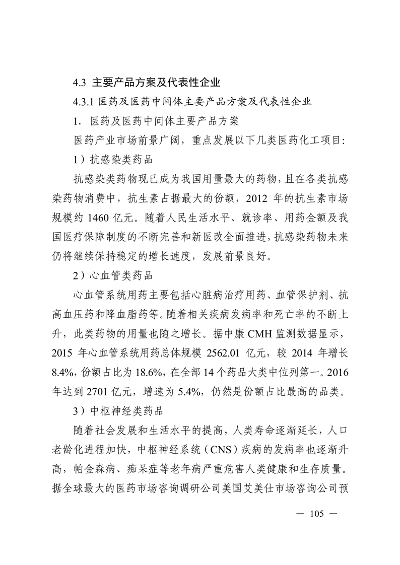 医药及医药中间体主要发展:原料药及中间体,如:抗生素类药物中间体、解热镇痛药用中间体、心血管系统药物用中间体,头孢类原料药、抗病毒类原料药、解热镇痛类原料药、呼吸系统类原料药等。