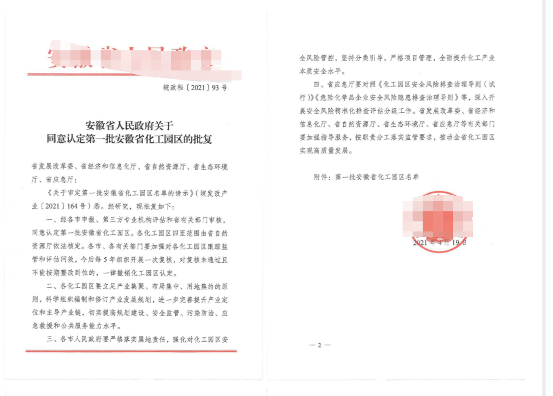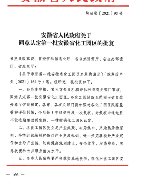 《安徽发展改革委等部门关于印发安徽省化工园区认定办法(试行)的通知》(皖发改产业〔2022〕355 号)