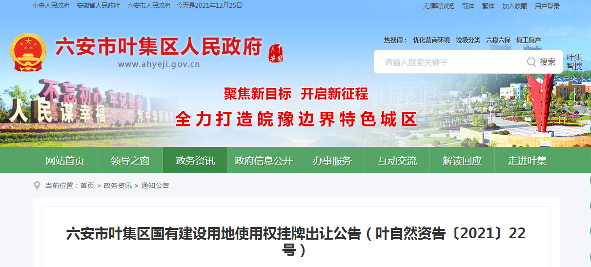 根据《中华人民共和国土地管理法》《招标拍卖挂牌出让国有建设用地使用权规定》(国土资源部第39号令)等有关法律法规规定,经六安市叶集区人民政府批准,六安市自然资源和规划局叶集分局对以下国有建设用地使用权进行挂牌出让。现将有关事项公告如下: