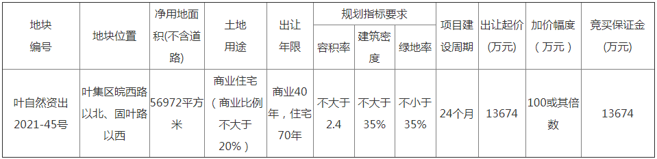 2、叶自然资出2021-45号地块设有出让底价,不达底价不成交。