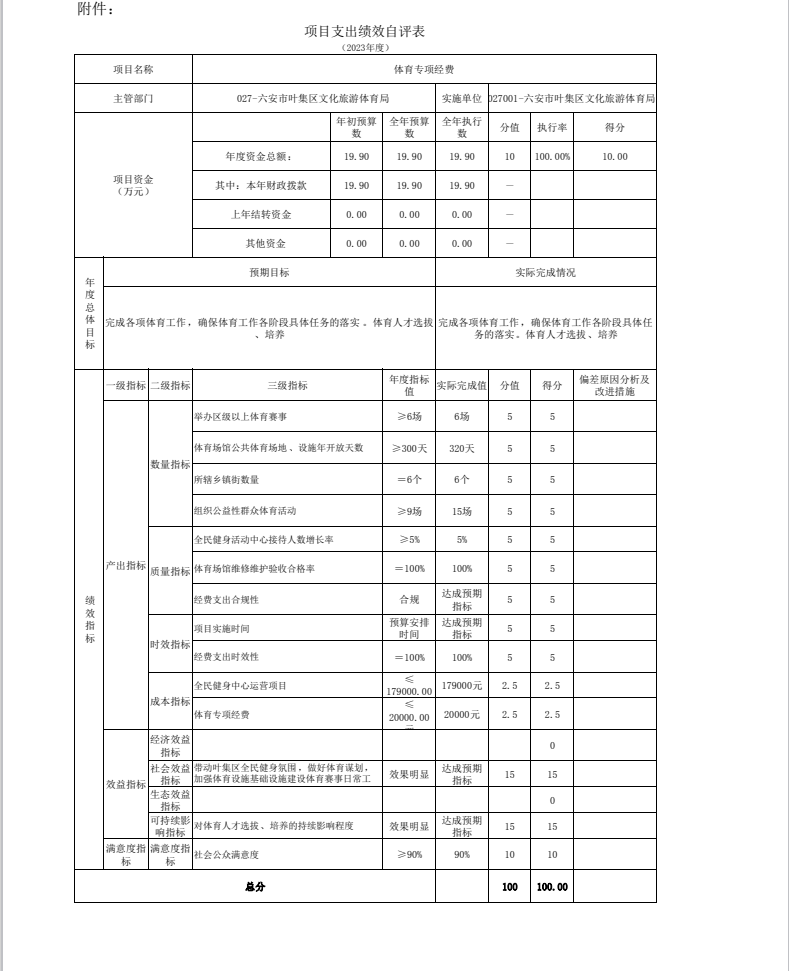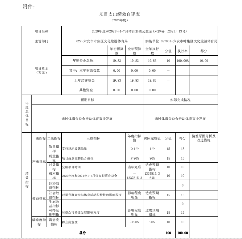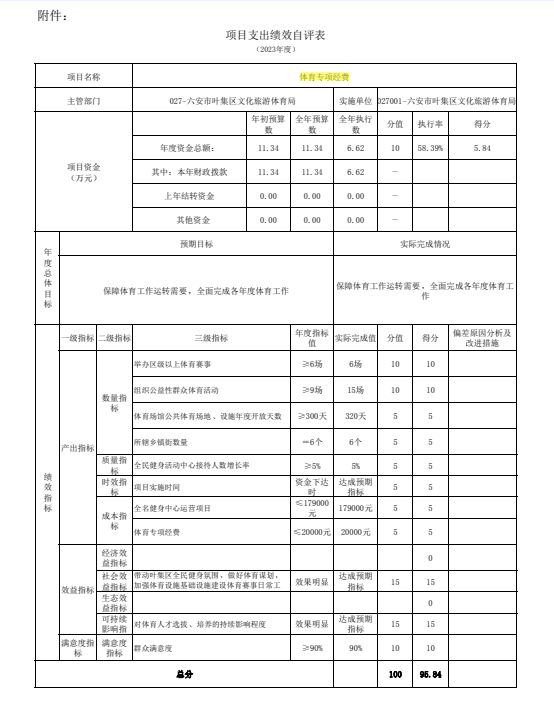 六安市叶集区文化旅游体育局部门绩效自评工作情况总结.docx