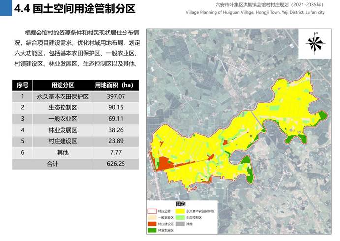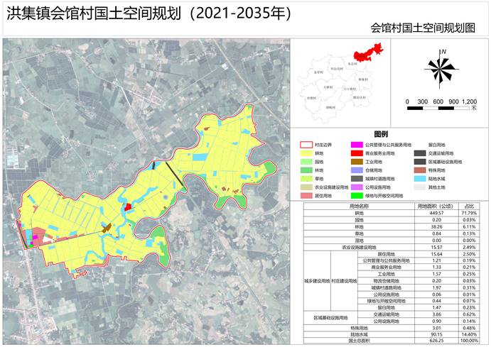 1.规划范围:会馆行政村国土空间总面积626.25公顷;