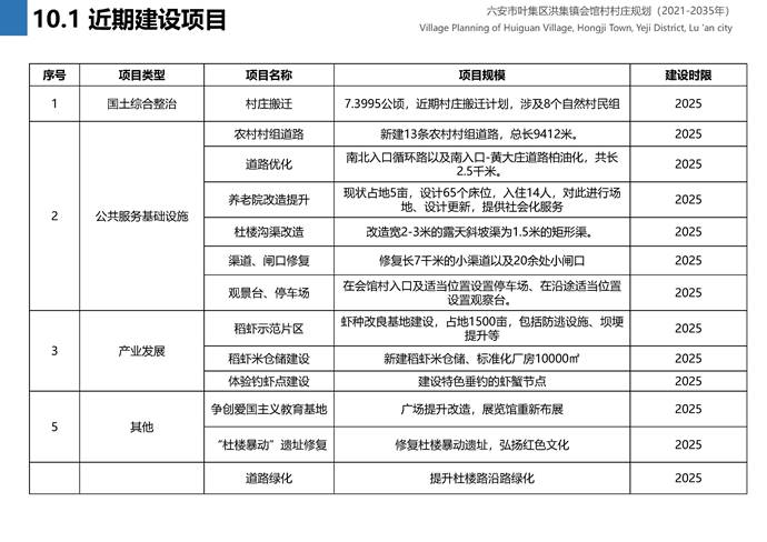 3.近期建设项目(工程)表