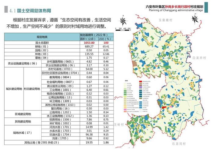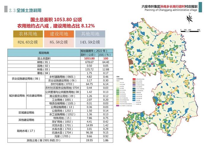 1.规划范围:长岗行政村国土空间总面积1053.80公顷;