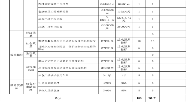 文旅专项经费项目绩效自评综述:根据年初设定的绩效目标,项目绩效自评得分为96.71分。全年预算数为215.43万元,执行数为144.59万元,完成预算的67.1%。项目绩效目标完成情况:完成文化工作主要项目支出,搞好文化活动等任务,确保文化工作各阶段具体任务的落实。减少文物安全隐患,保护文物安全完整。完成旅游工作一般性支出,包括旅游会议、旅游推介、参加培训、文明旅游建设等支出,推进区文旅工作正常开展,保障执法队伍工作稳定有序开展,推动地区文旅工作质量不断提高。发现的主要问题及原因:预算执行率未达到100%。原因是区级预算资金紧张,我单位部分支出年底未支付成功。下一步改进措施:今后我单位将加强对预算资金支付情况的定期整理并在会议通报进度情况,加强各部门对资金支付进度的把握,加快资金拨付进度和项目实施进度,为后续绩效目标的有效实现提供有力支撑。