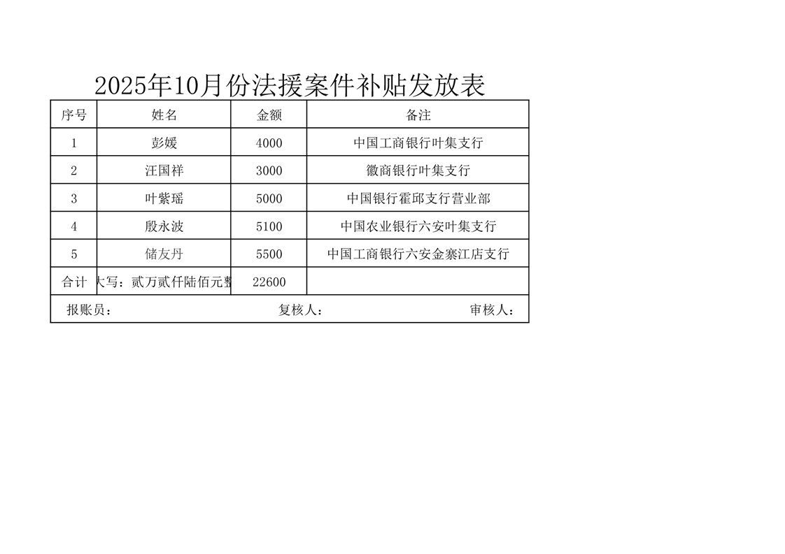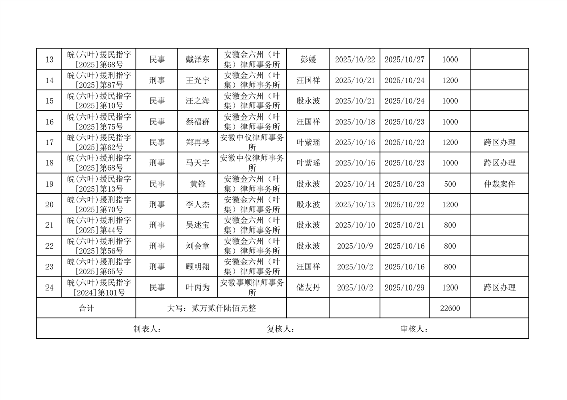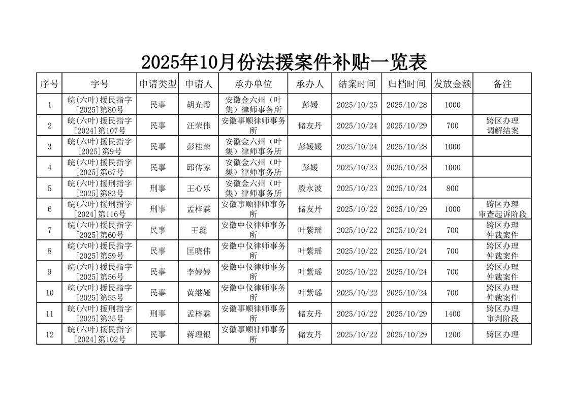 六安市叶集区困难群体法律援助分配结果(2025年10月)