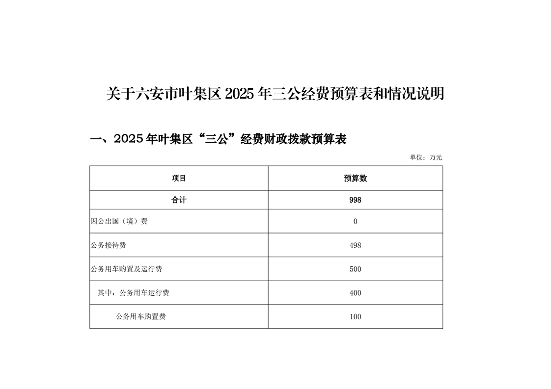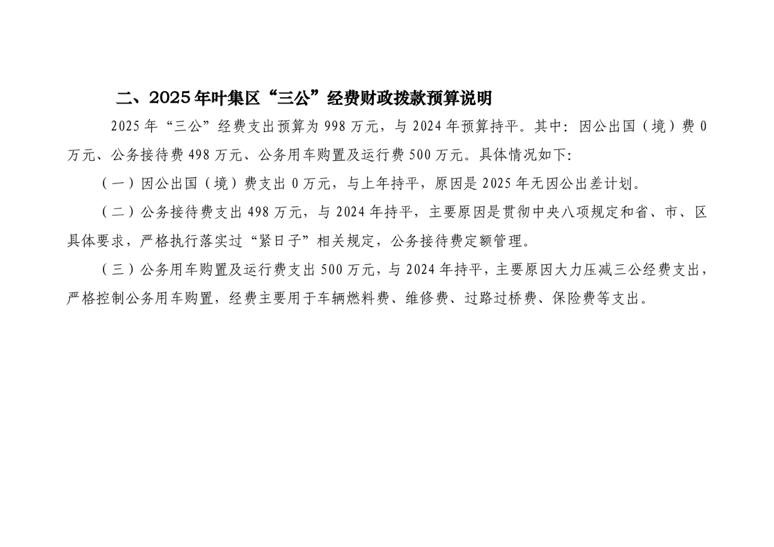 六安市叶集区2025年三公经费预算报表及情况的说明