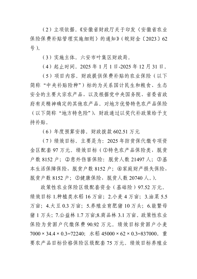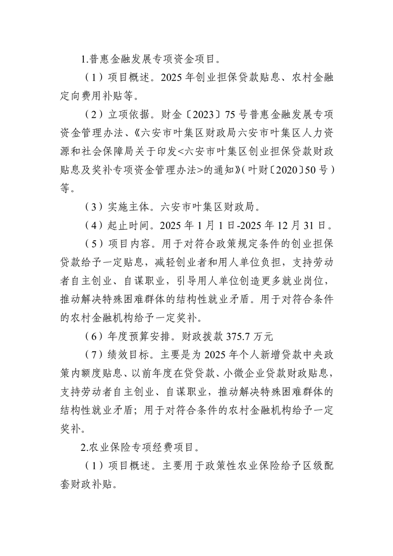 六安市叶集区财政局2025年度部门项目文本
