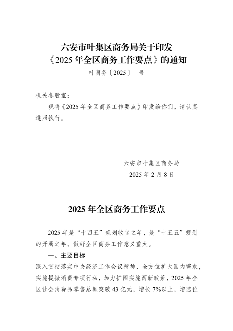 【其他文件】六安市叶集区商务局关于印发《2025年全区商务工作要点》的通知