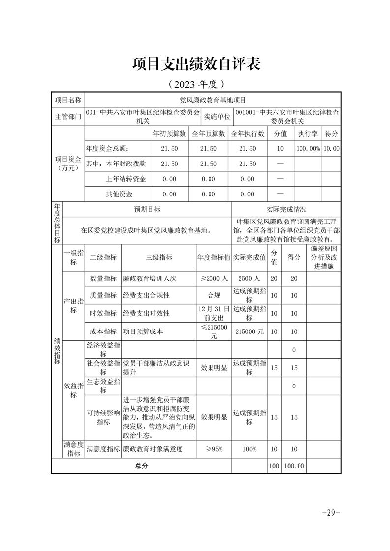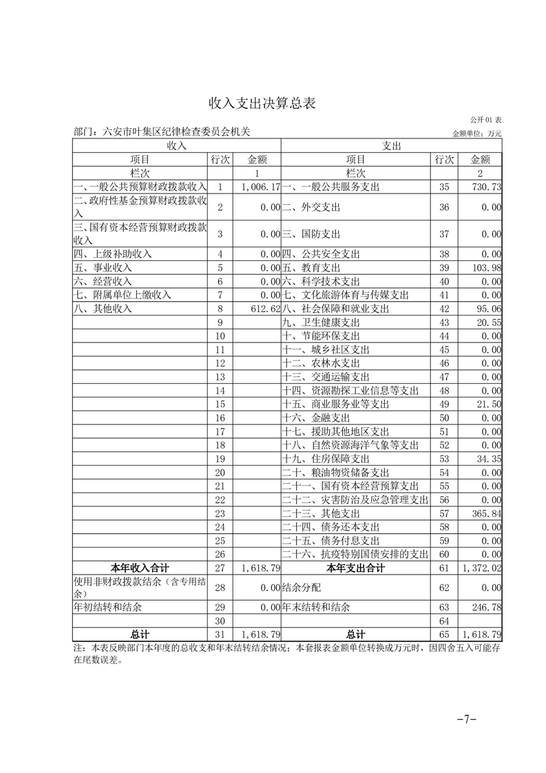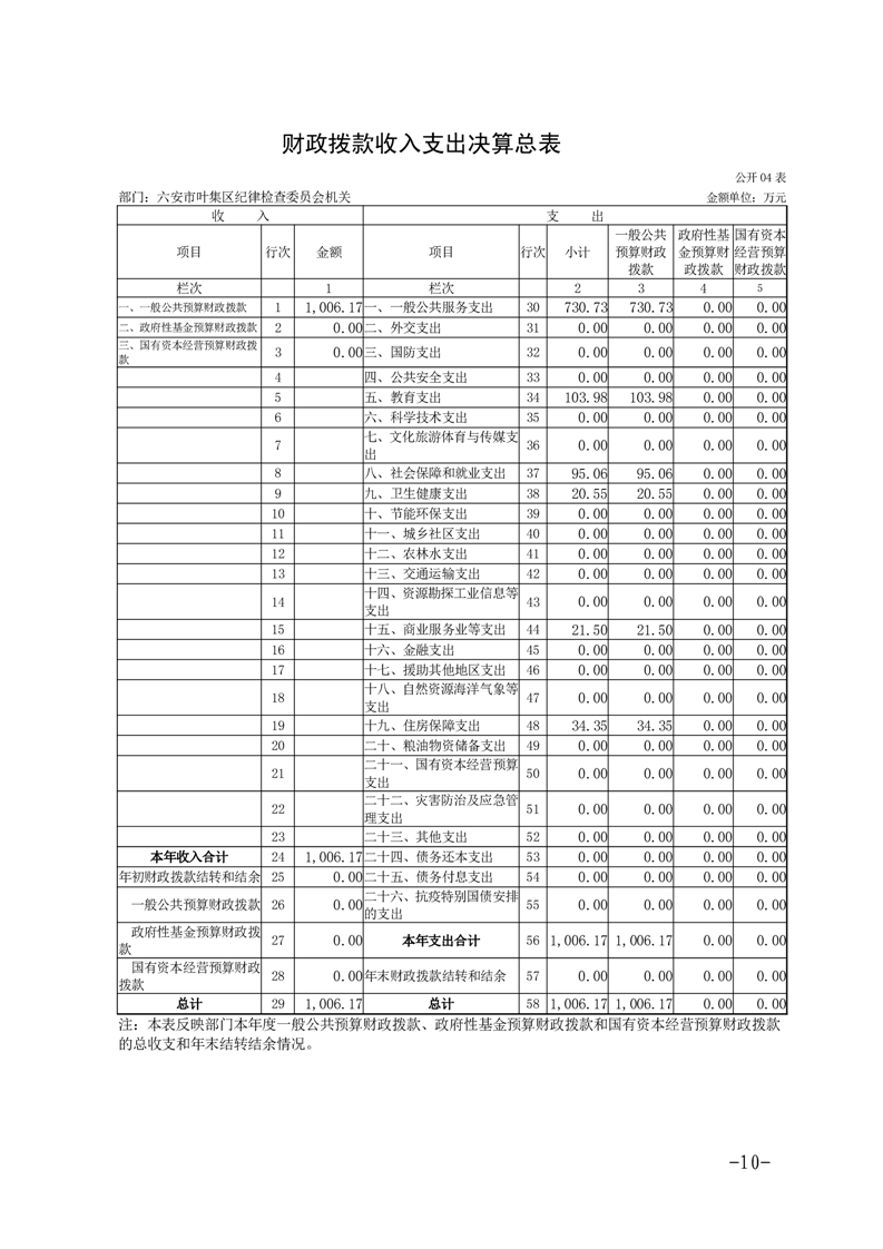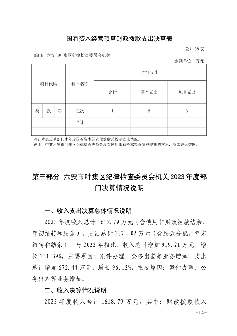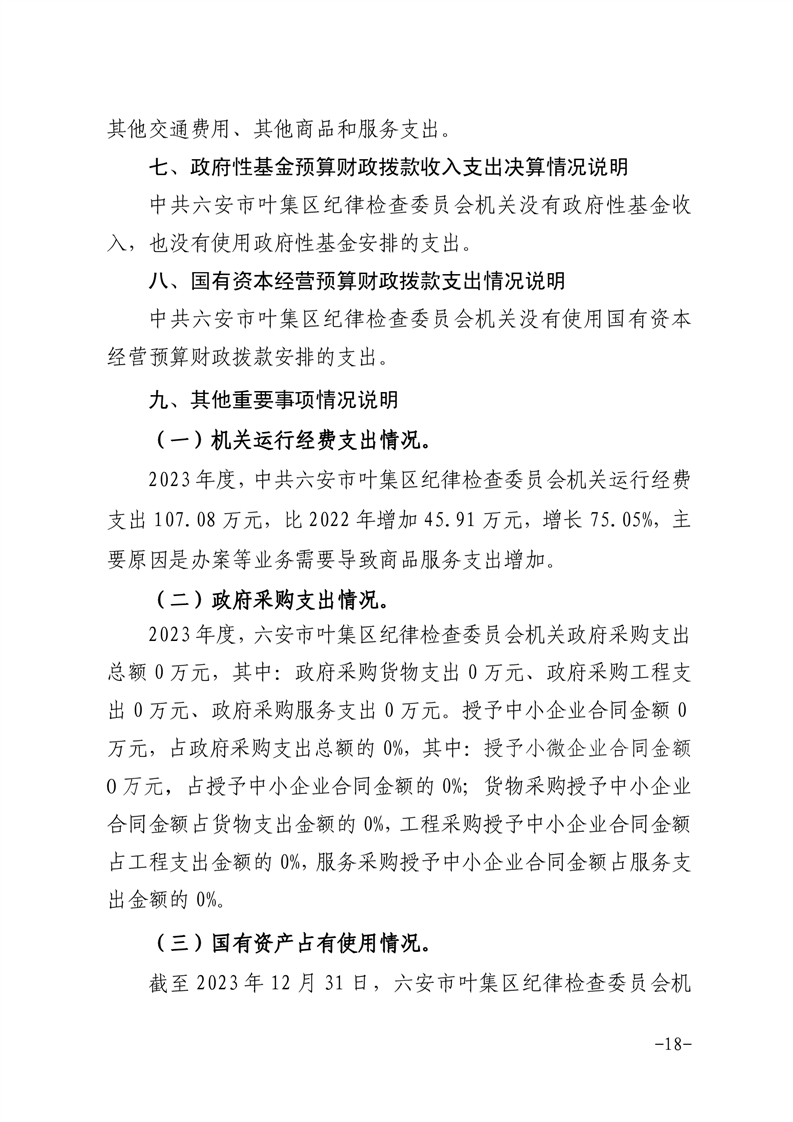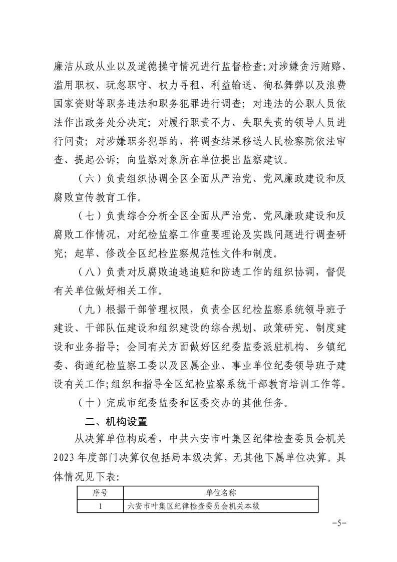 六安市叶集区纪律检查委员会机关2023年度部门决算