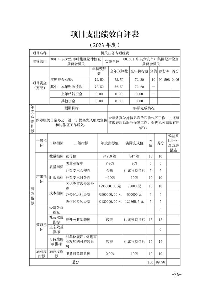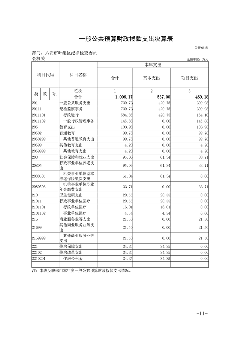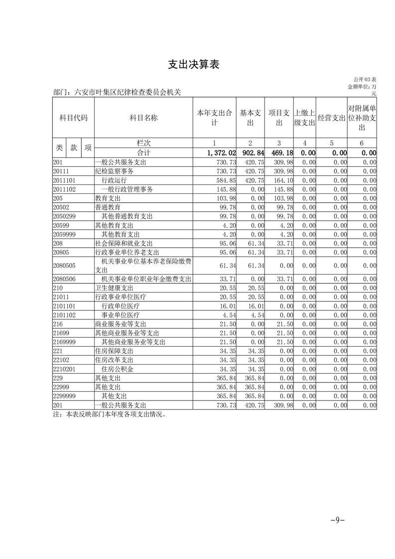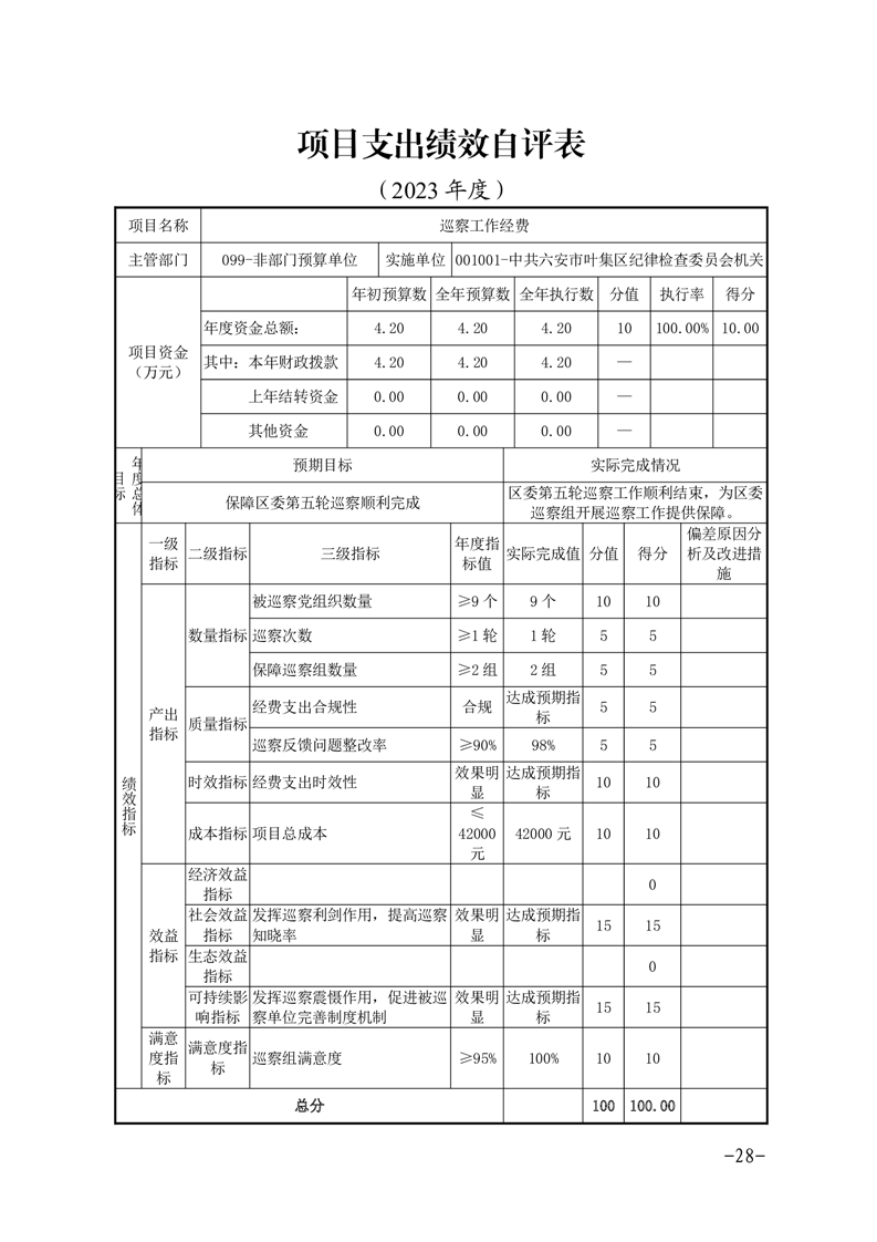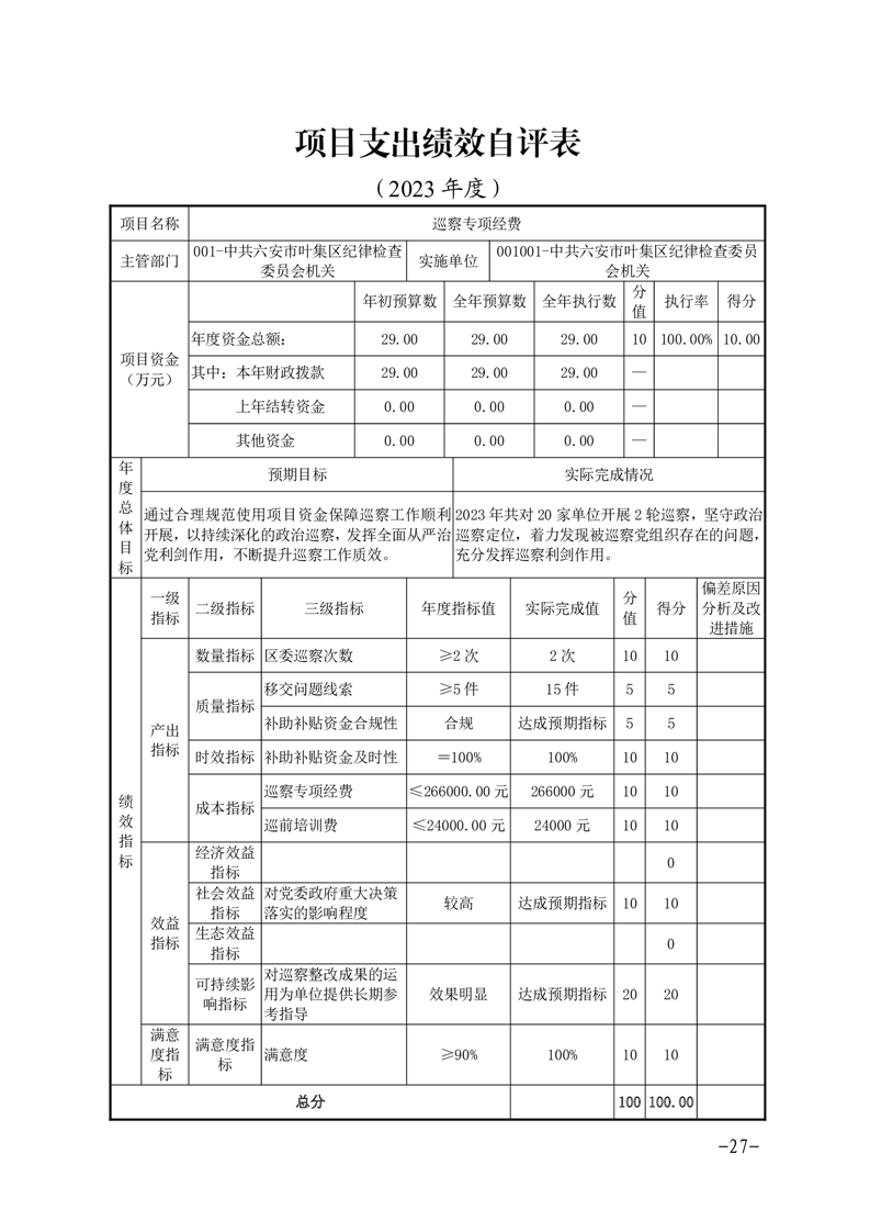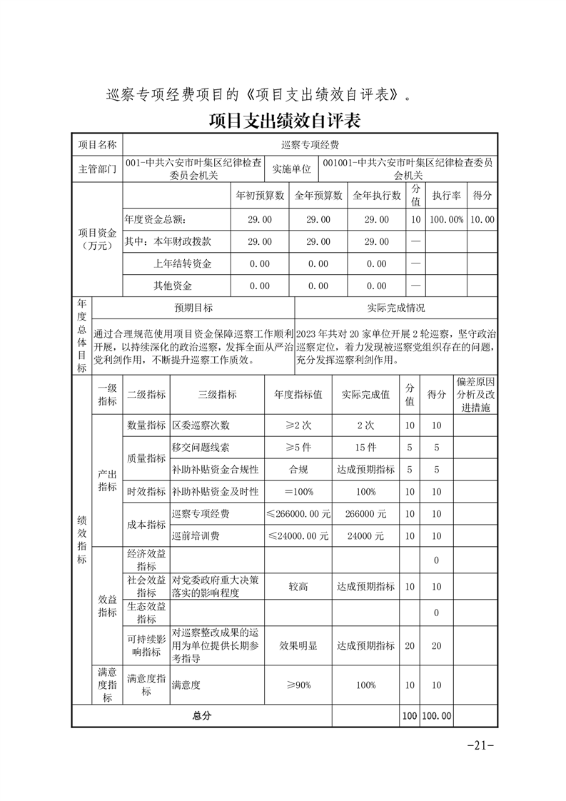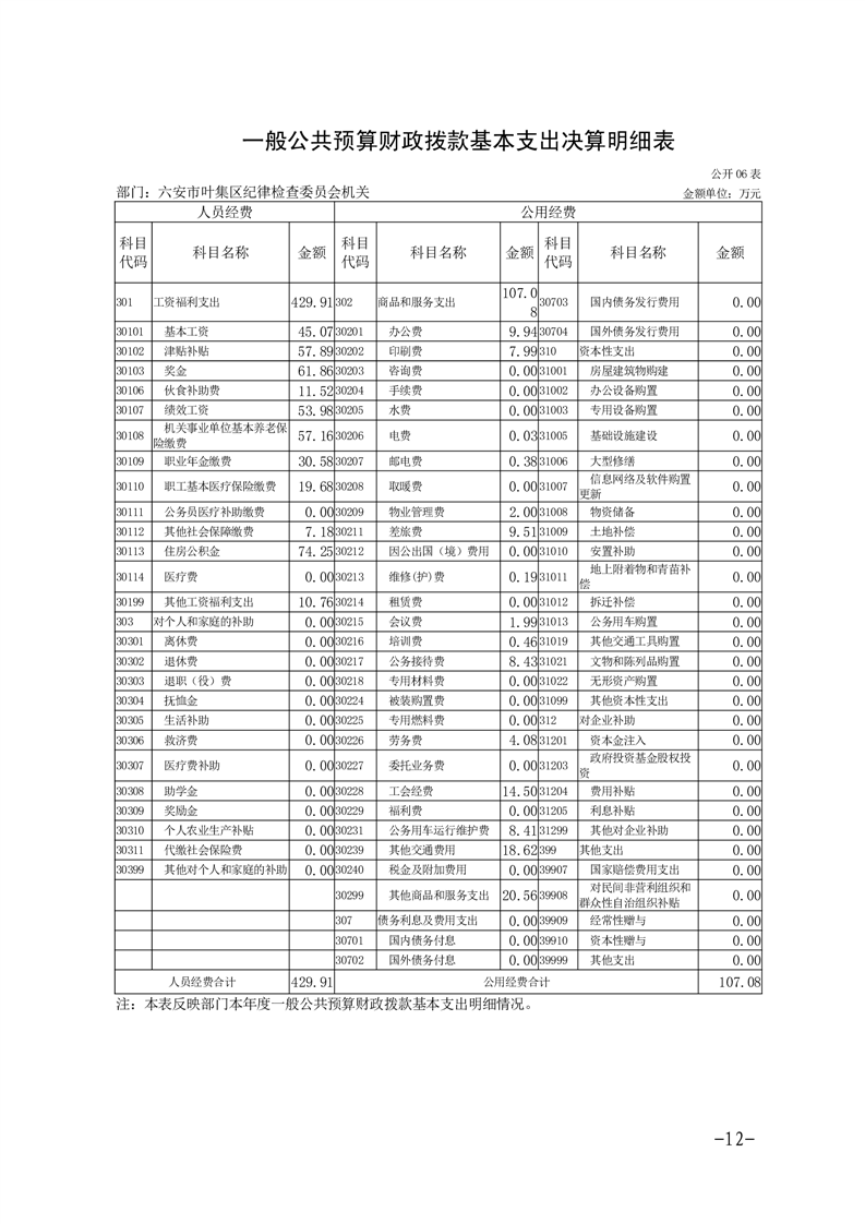 六安市叶集区纪律检查委员会机关2023年度部门决算