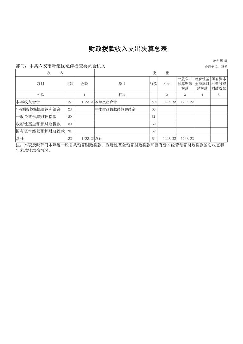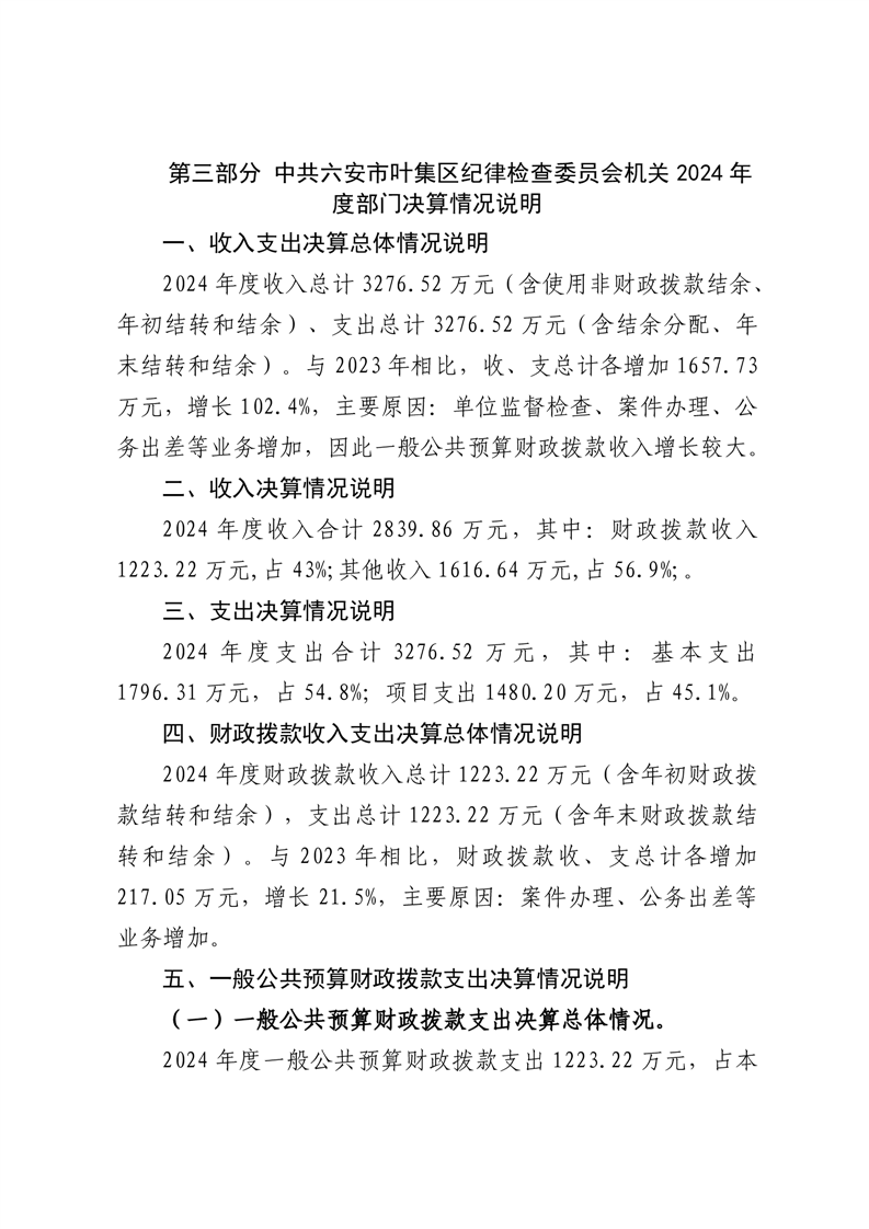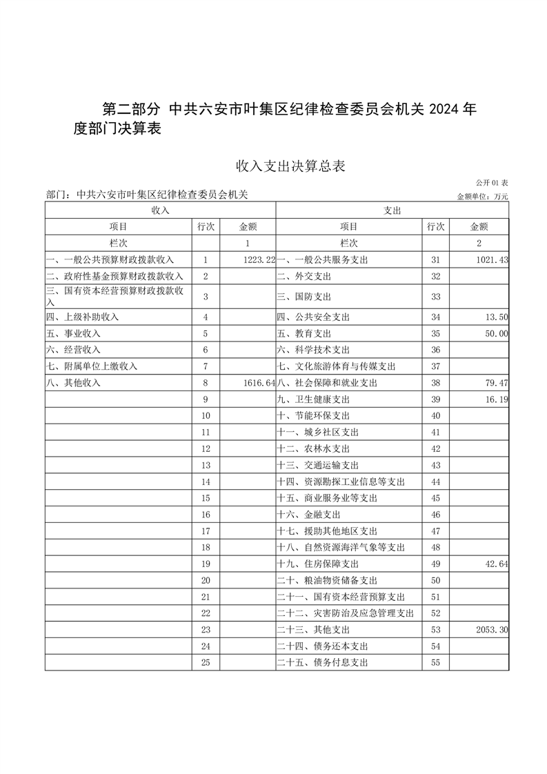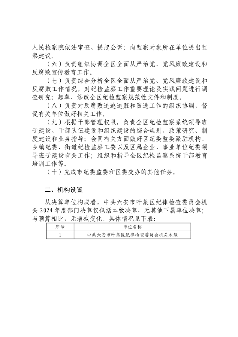 中共六安市叶集区纪律检查委员会机关2024年度部门决算