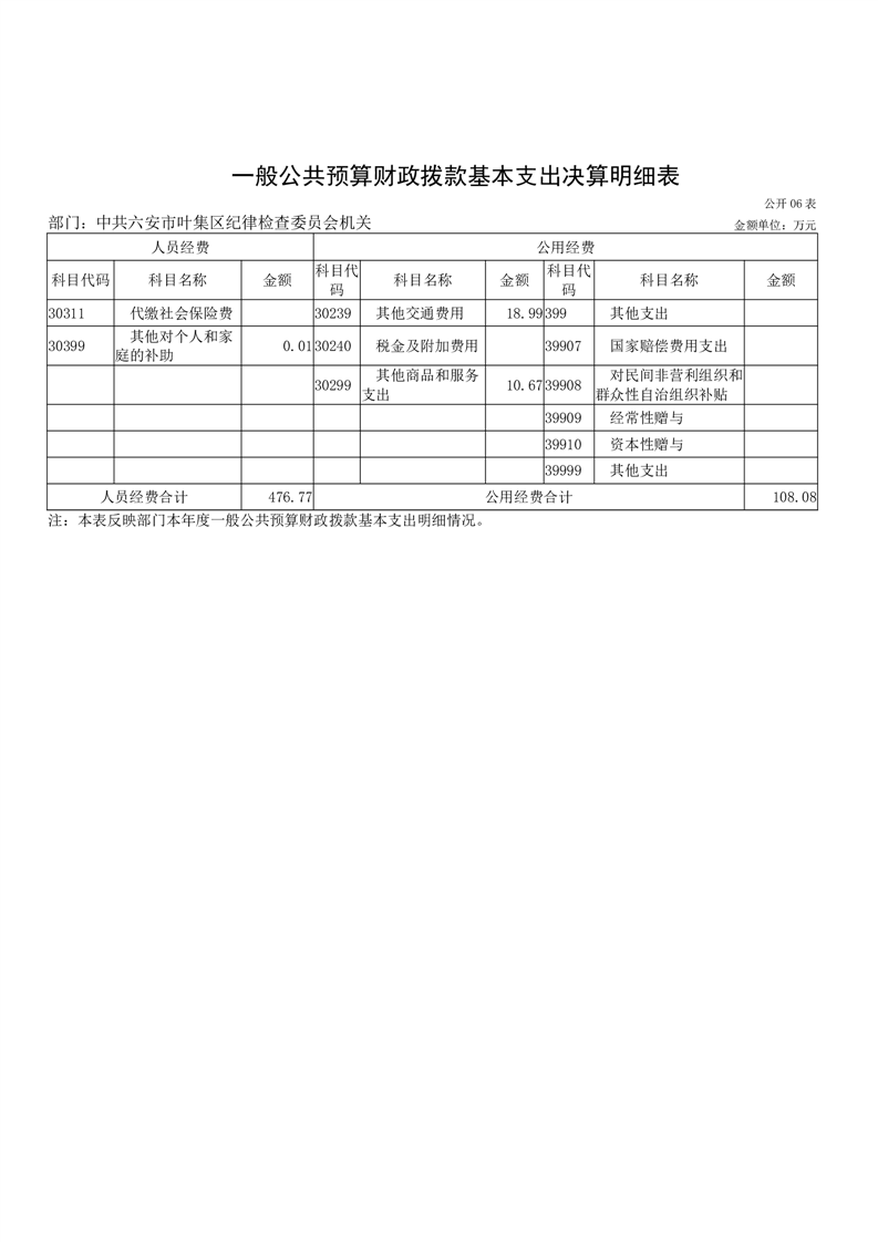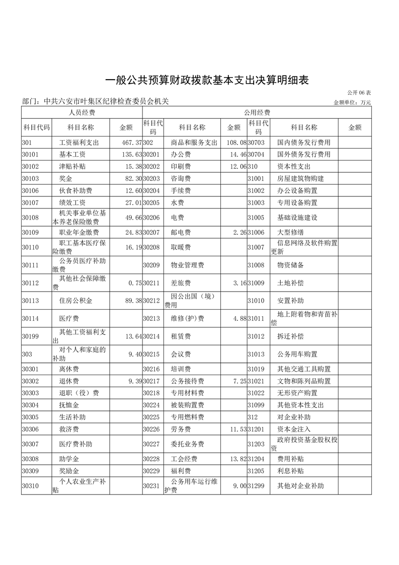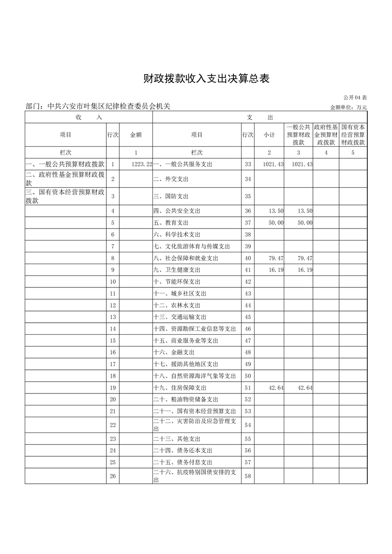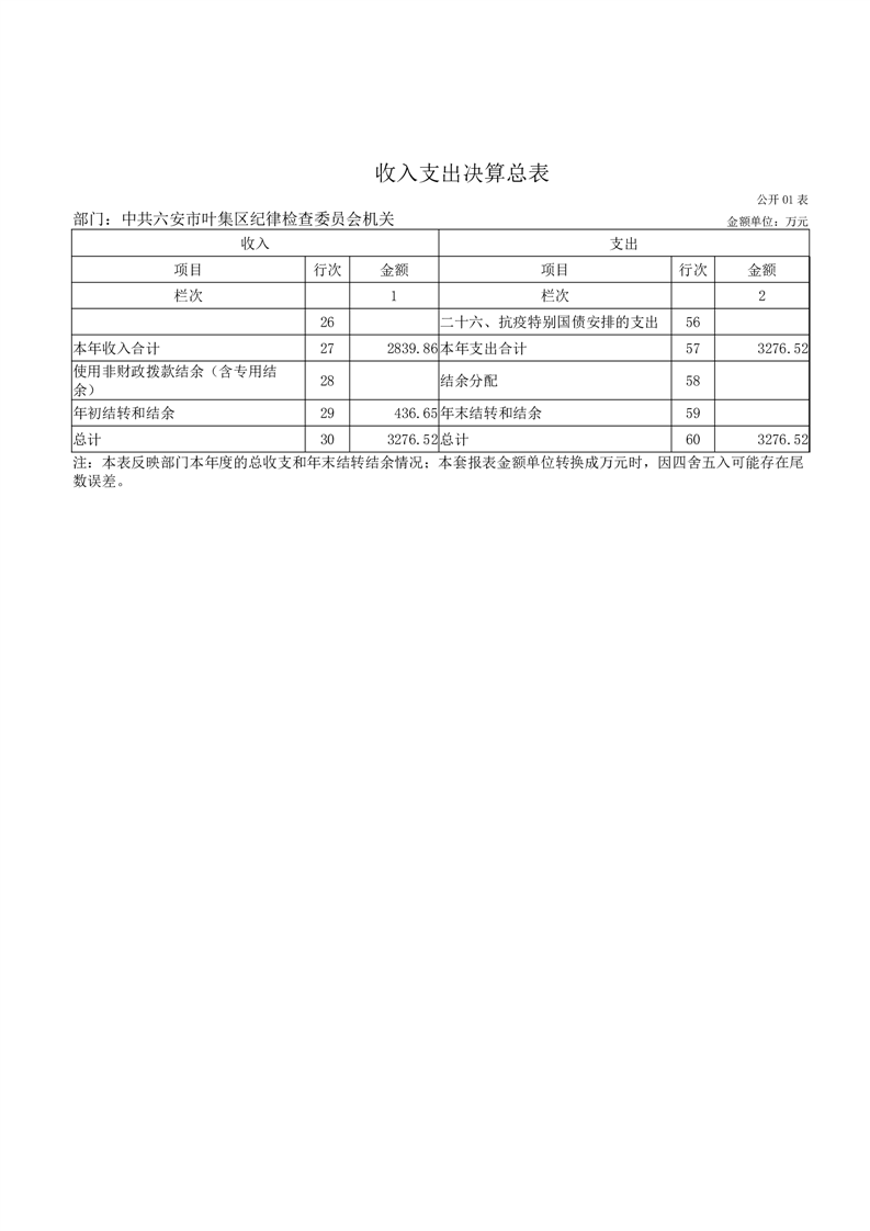 中共六安市叶集区纪律检查委员会机关2024年度部门决算