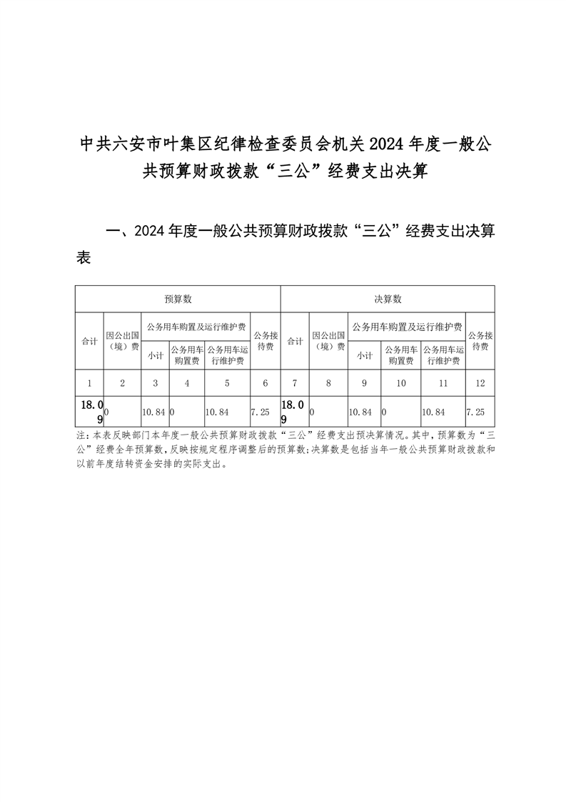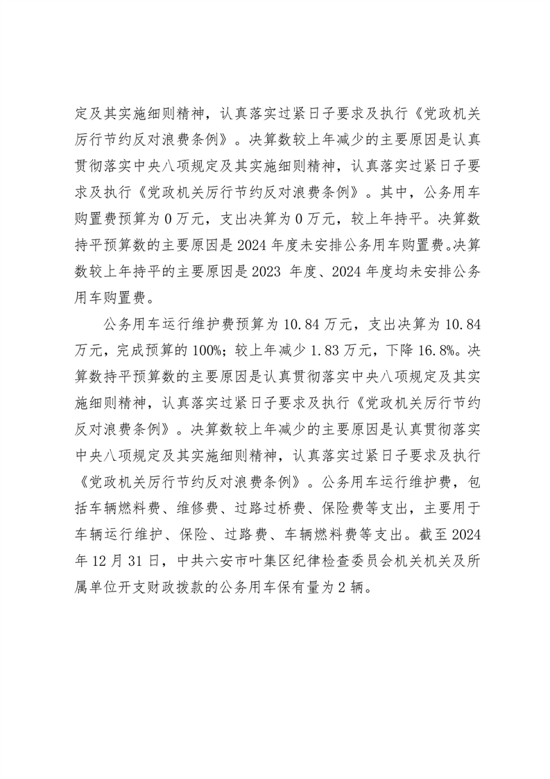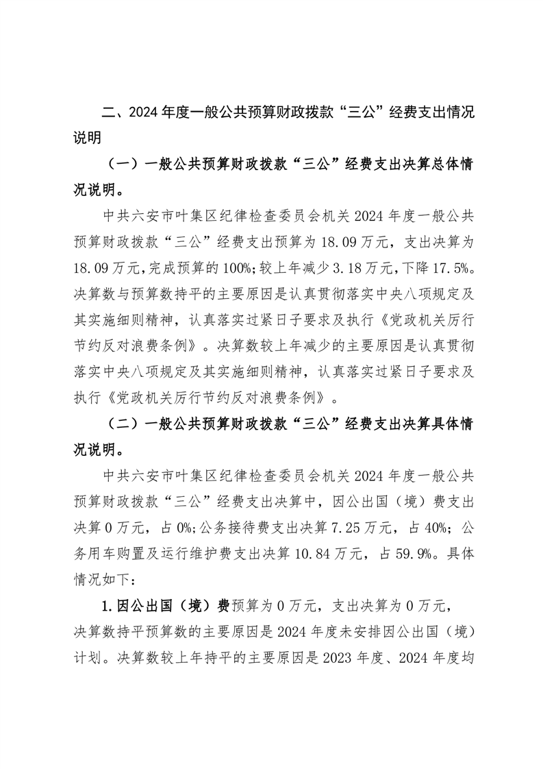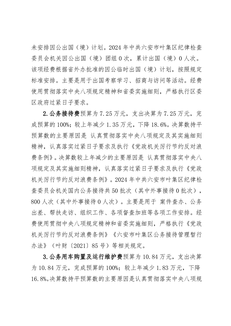 中共六安市叶集区纪律检查委员会机关2024年度一般公共预算财政拨款“三公”经费支出决算