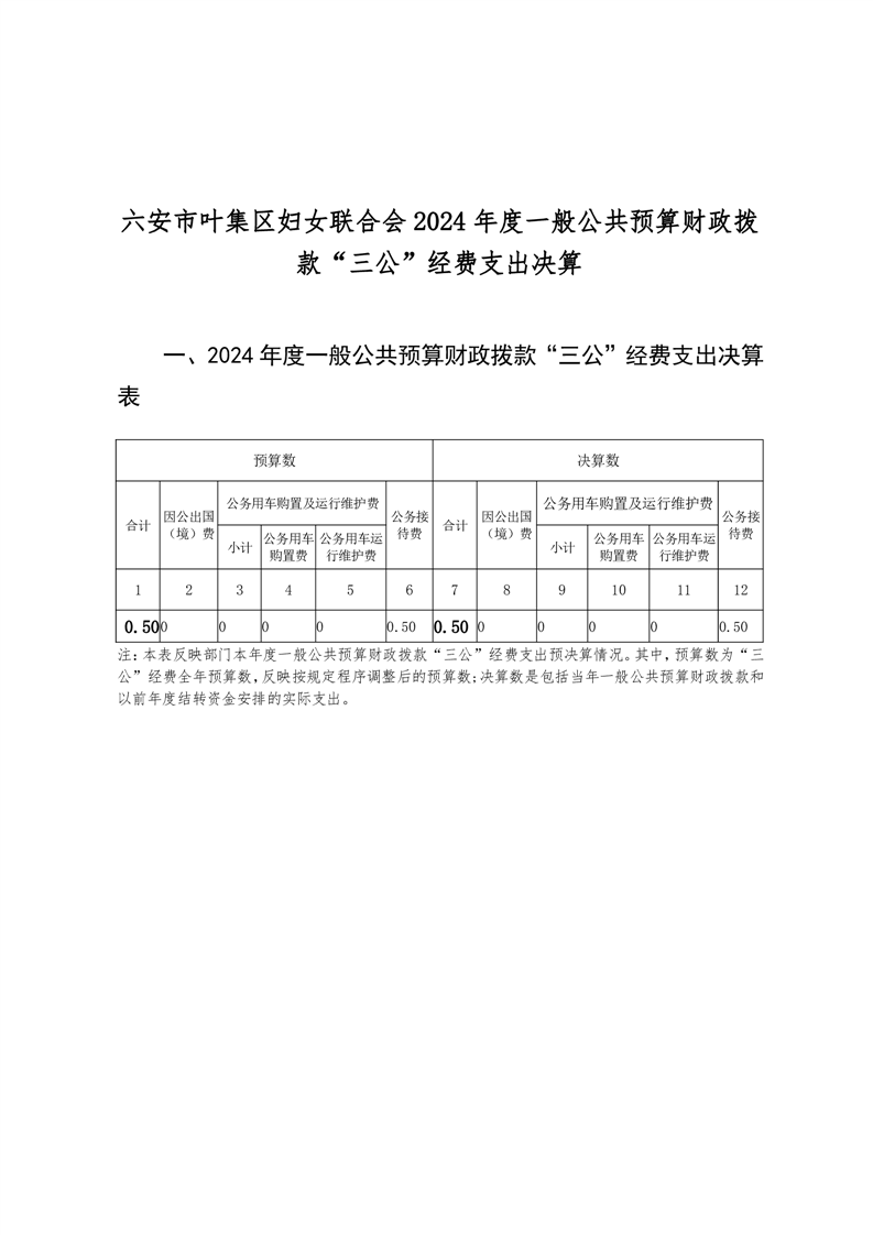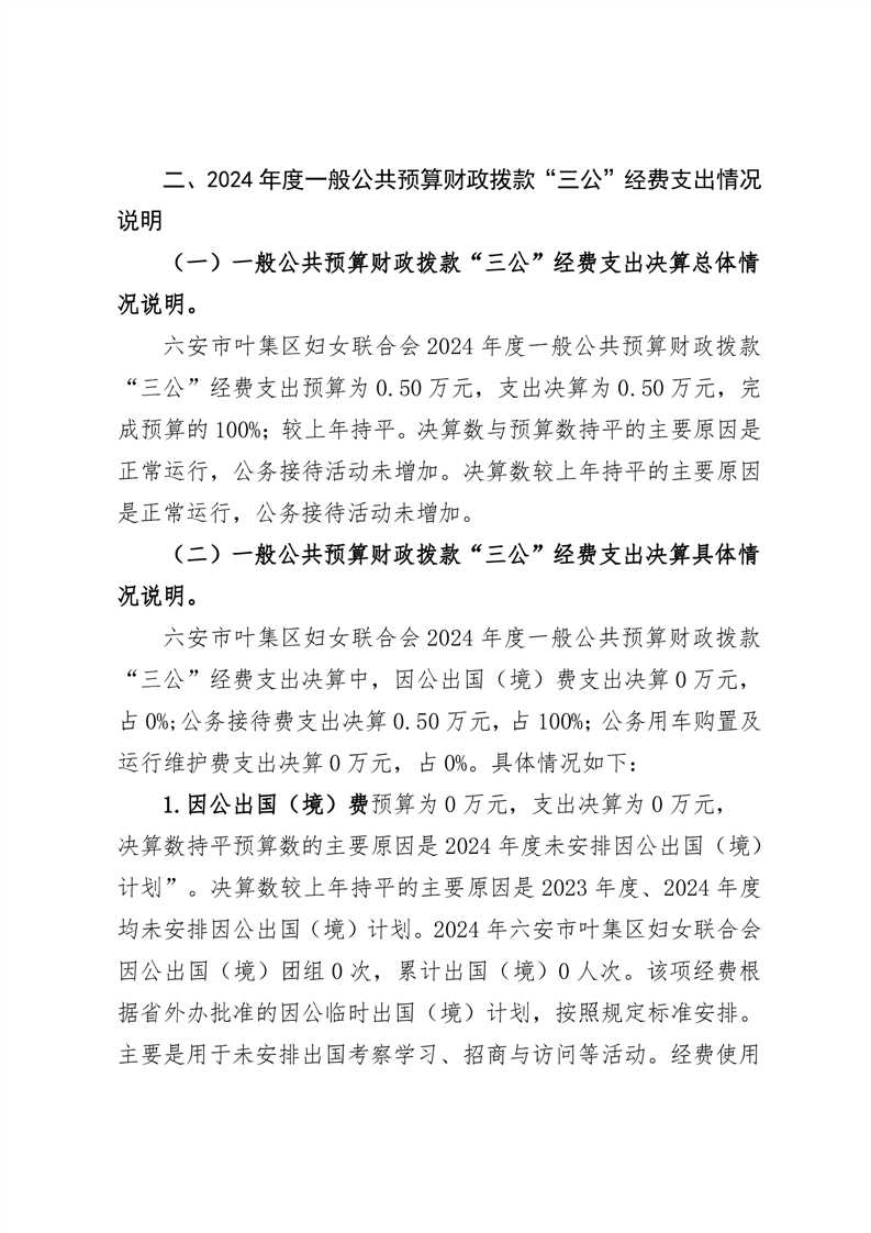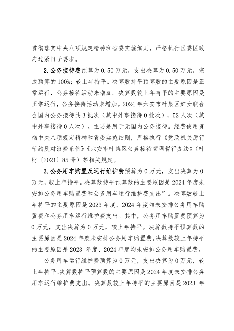 六安市叶集区妇联2024年度一般公共预算财政拨款“三公”经费支出决算