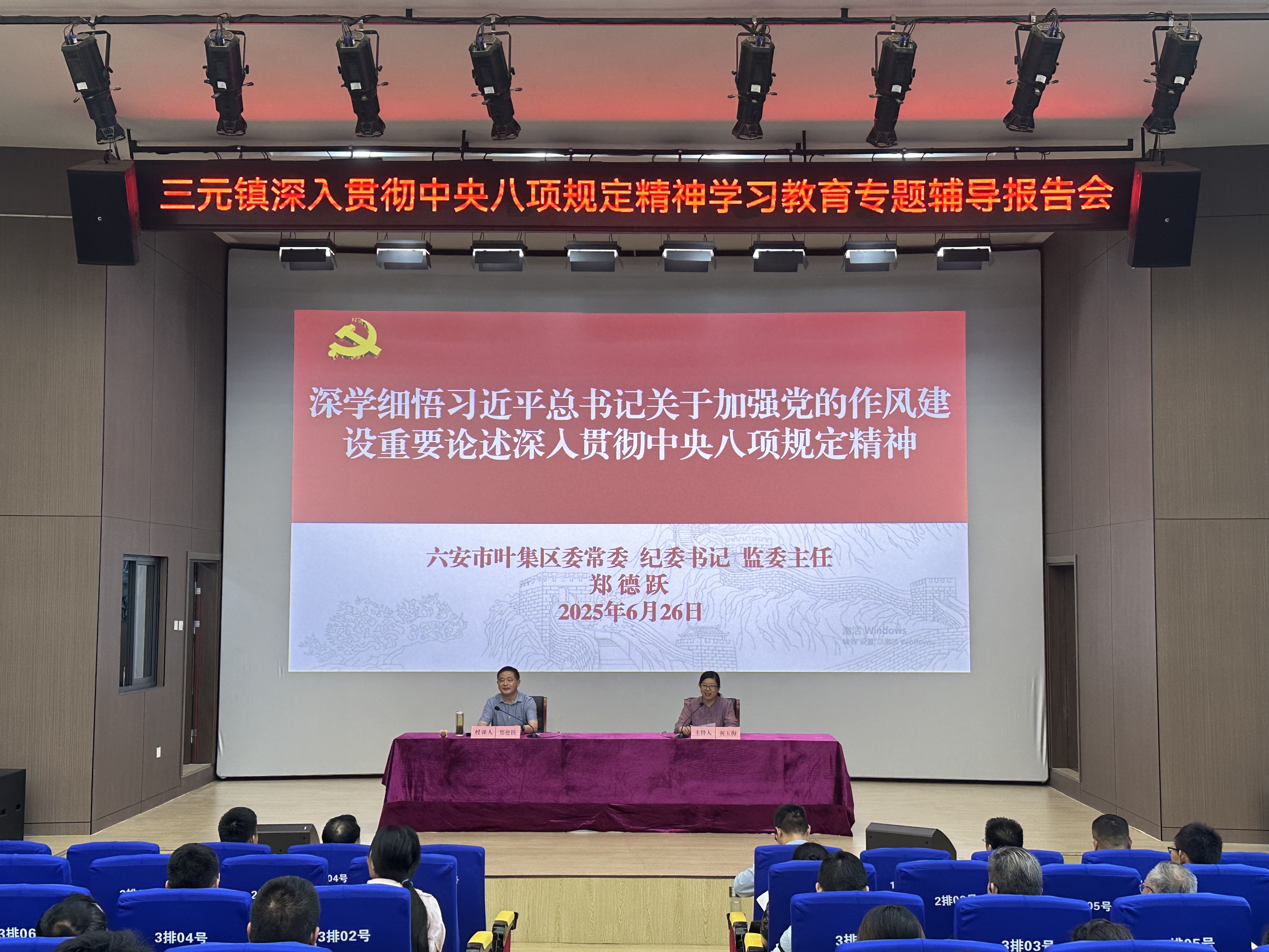 三元镇深入贯彻中央八项规定精神学习教育专题辅导报告会