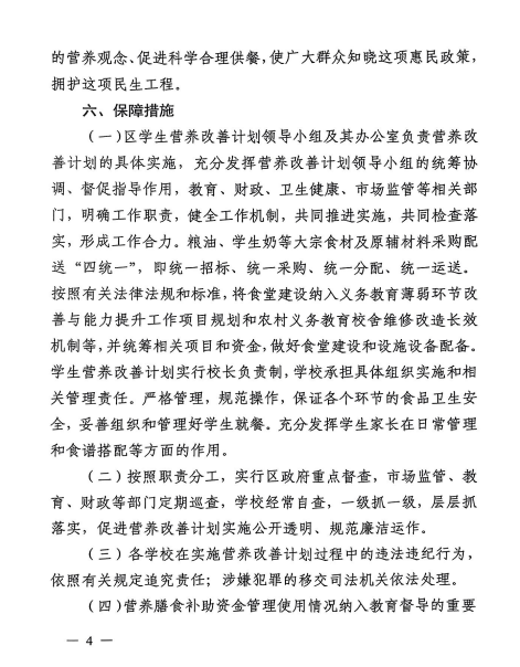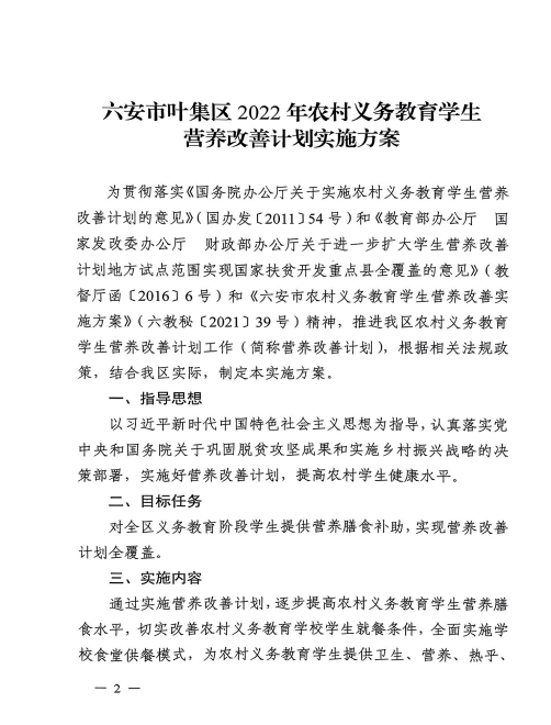 【政策与标准】六安市叶集区农村义务教育学生营养改善计划实施方案