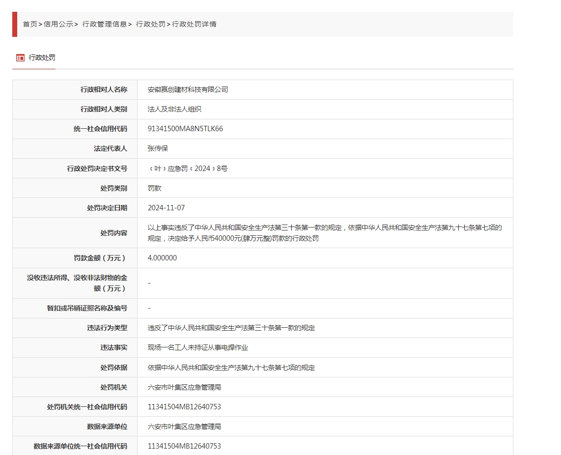 | 名 称: | 叶集区应急管理局2024年安全生产行政处罚案件(八) |