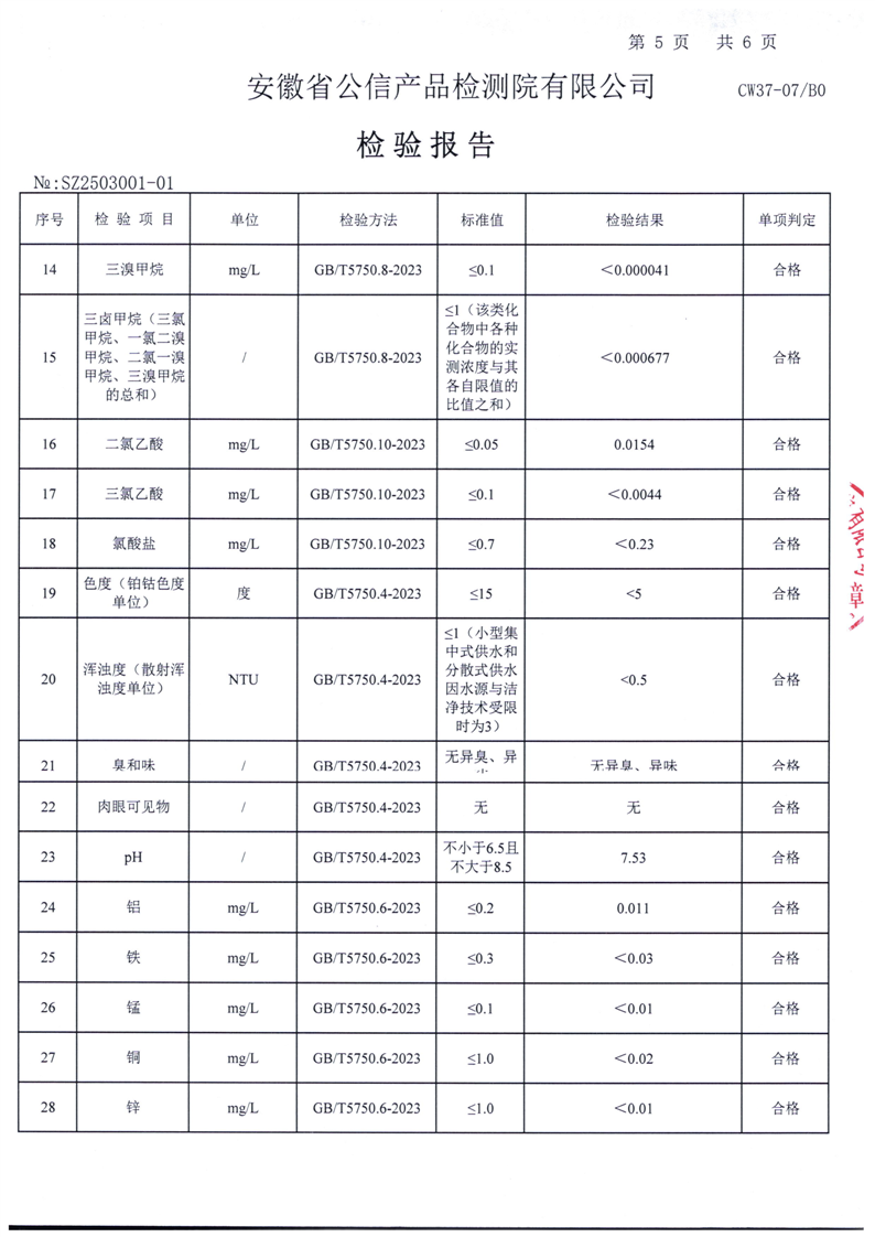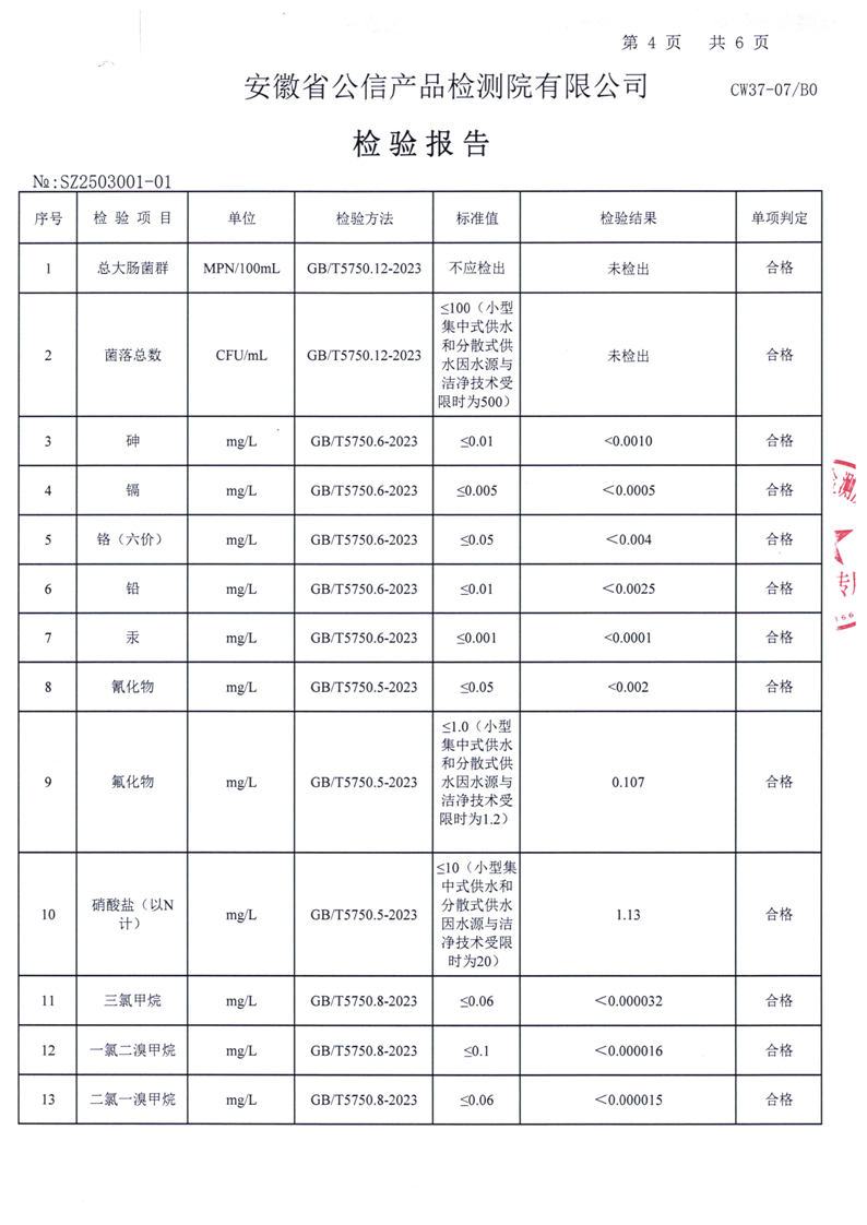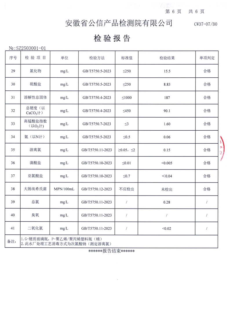 | 名 称: | 六安市叶集区2025年3月份城乡供水一体化(梅山水厂管网延伸)水质检测报告 | ||