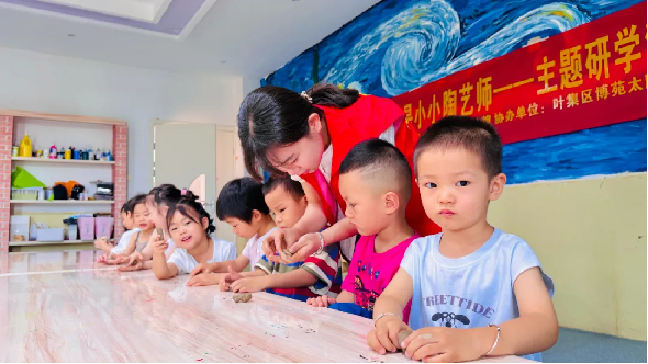 7月2日,区文化馆联合博苑太阳婴幼园在幼儿园陶艺教室开展“一本正经玩泥巴 我是小小陶艺师”主题研学活动,带领萌娃们走进陶艺的奇妙世界,亲手制作可爱的“小蘑菇”,感受非遗文化的独特魅力。