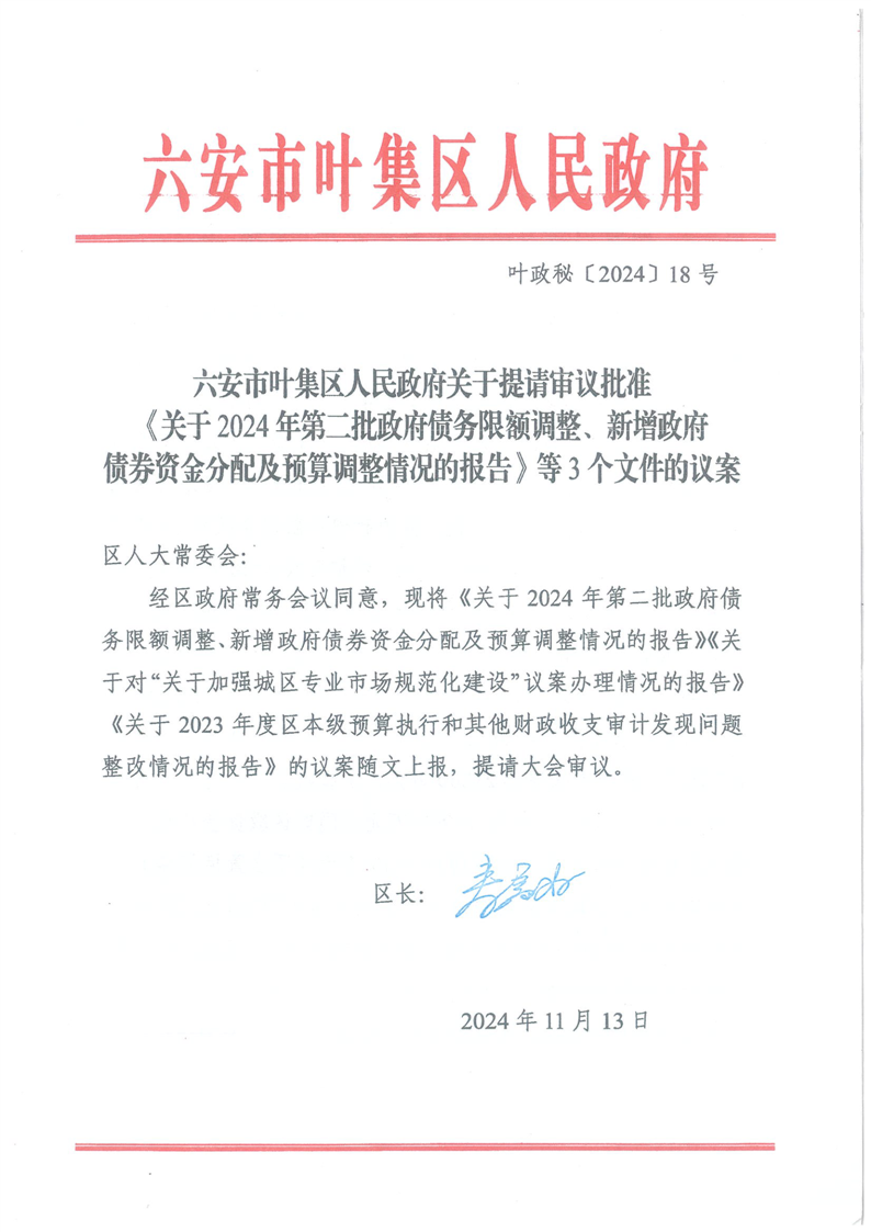 | 名 称: | 关于2024年第二批政府债务限额调整、新增政府债券资金分配及预算调整情况的报告 |