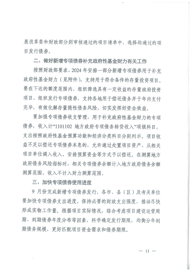 | 名 称: | 关于2024年第二批政府债务限额调整、新增政府债券资金分配及预算调整情况的报告 | ||