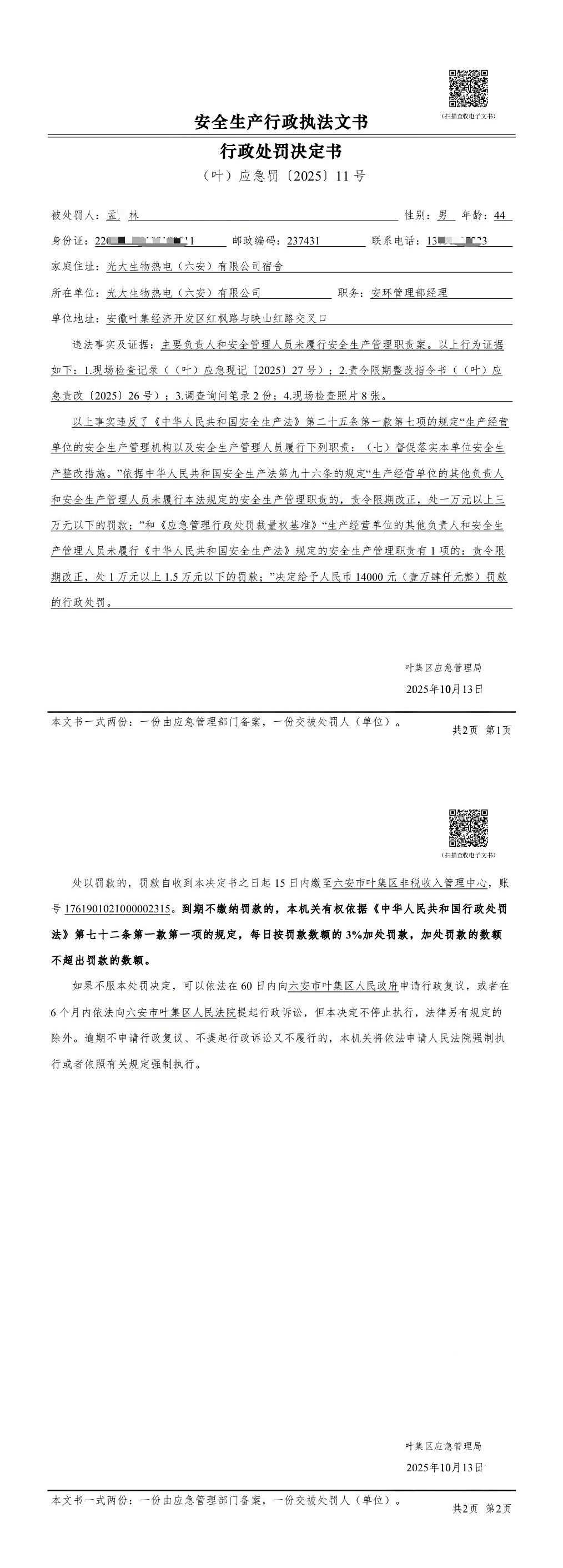 | 名 称: | 叶集区应急管理局2025年安全生产行政处罚案件(十一) |