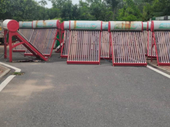 1、男女生宿舍楼楼顶太阳能热水器难以固定,存在掉落的隐患;