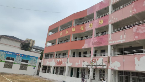 2、启智楼教学楼外墙校园文化牌已经拆除,安装新的文化牌;
