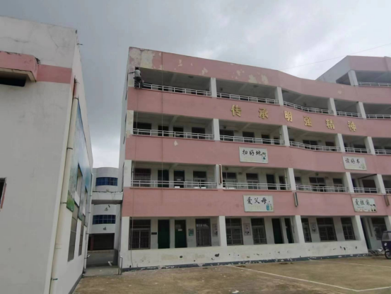 2、启智楼教学楼外墙校园文化牌老化,存在掉落的危险;