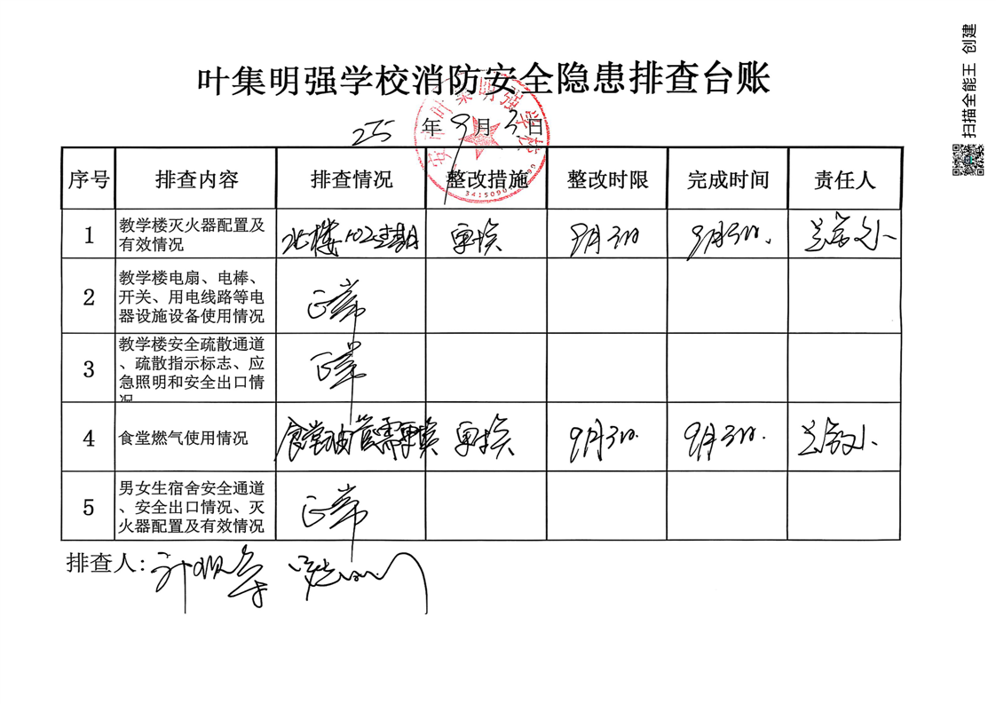 叶集明强学校安全隐患排查整改情况 |
