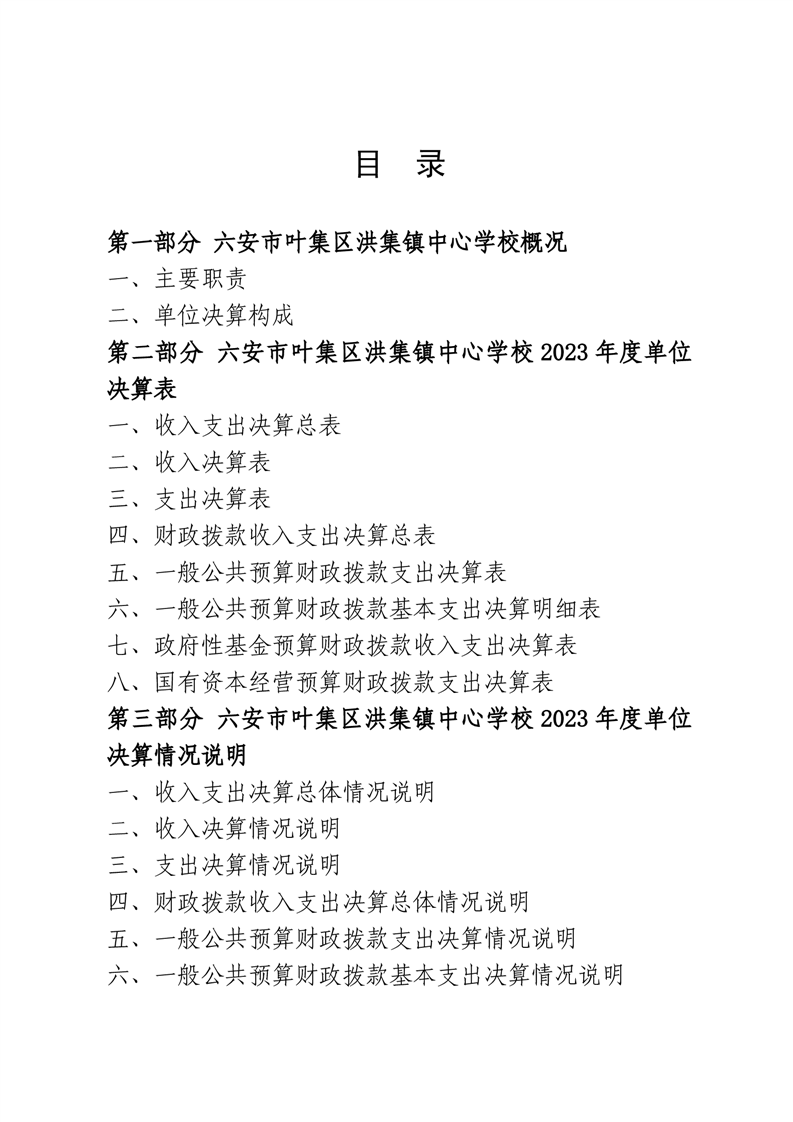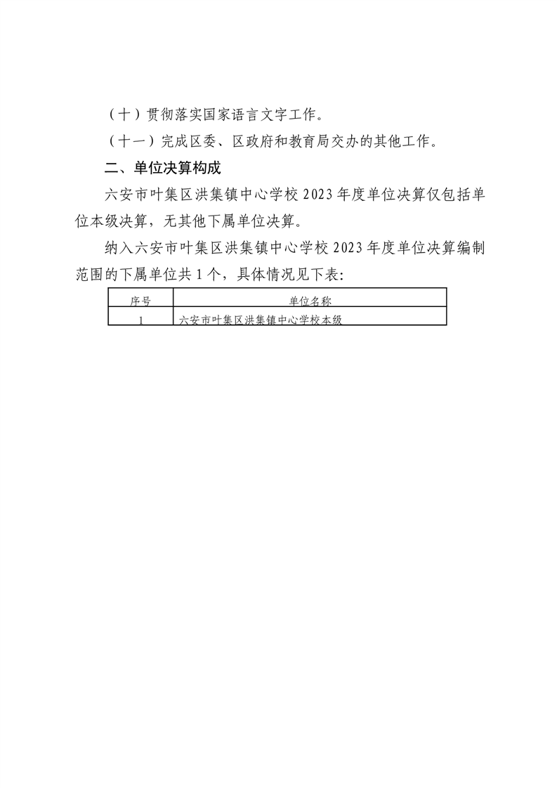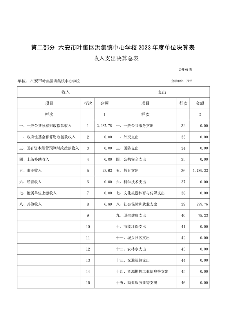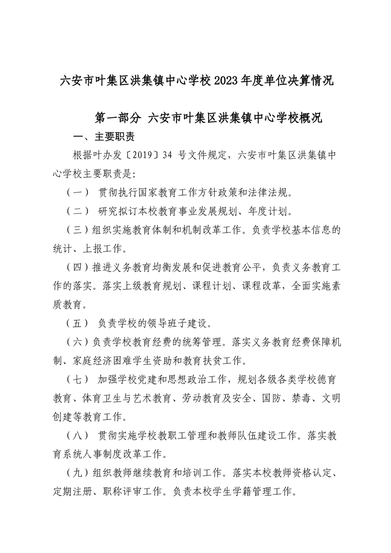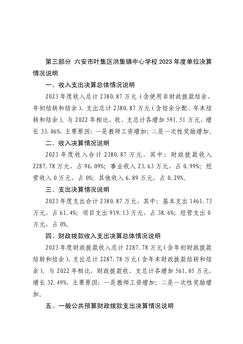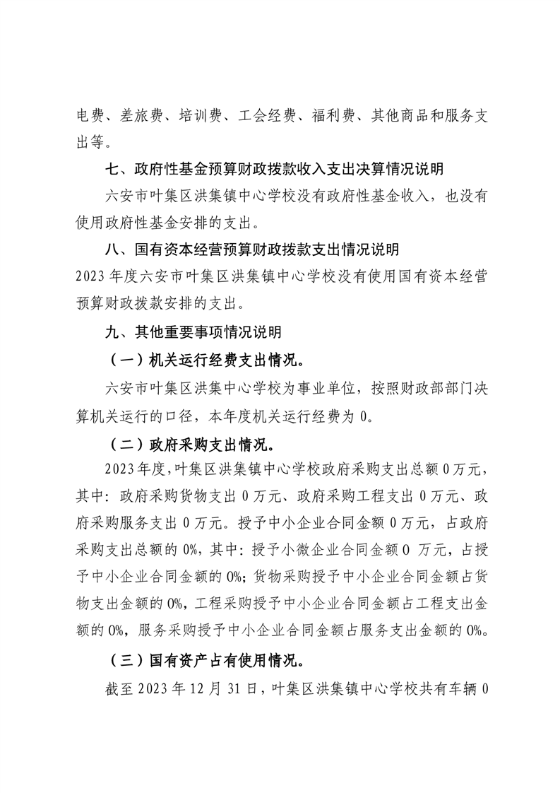 六安市叶集区洪集镇中心学校2023年度单位决算公开