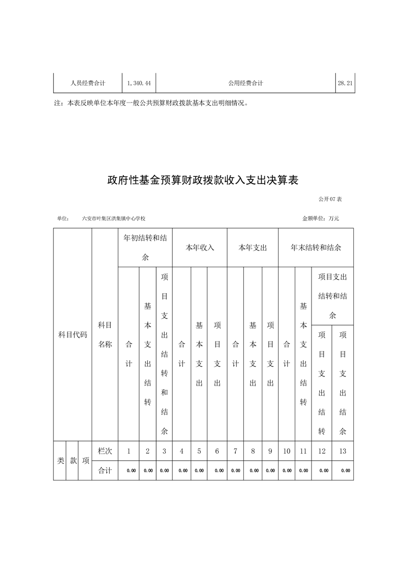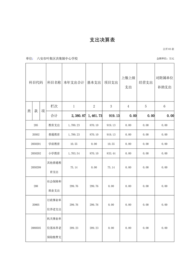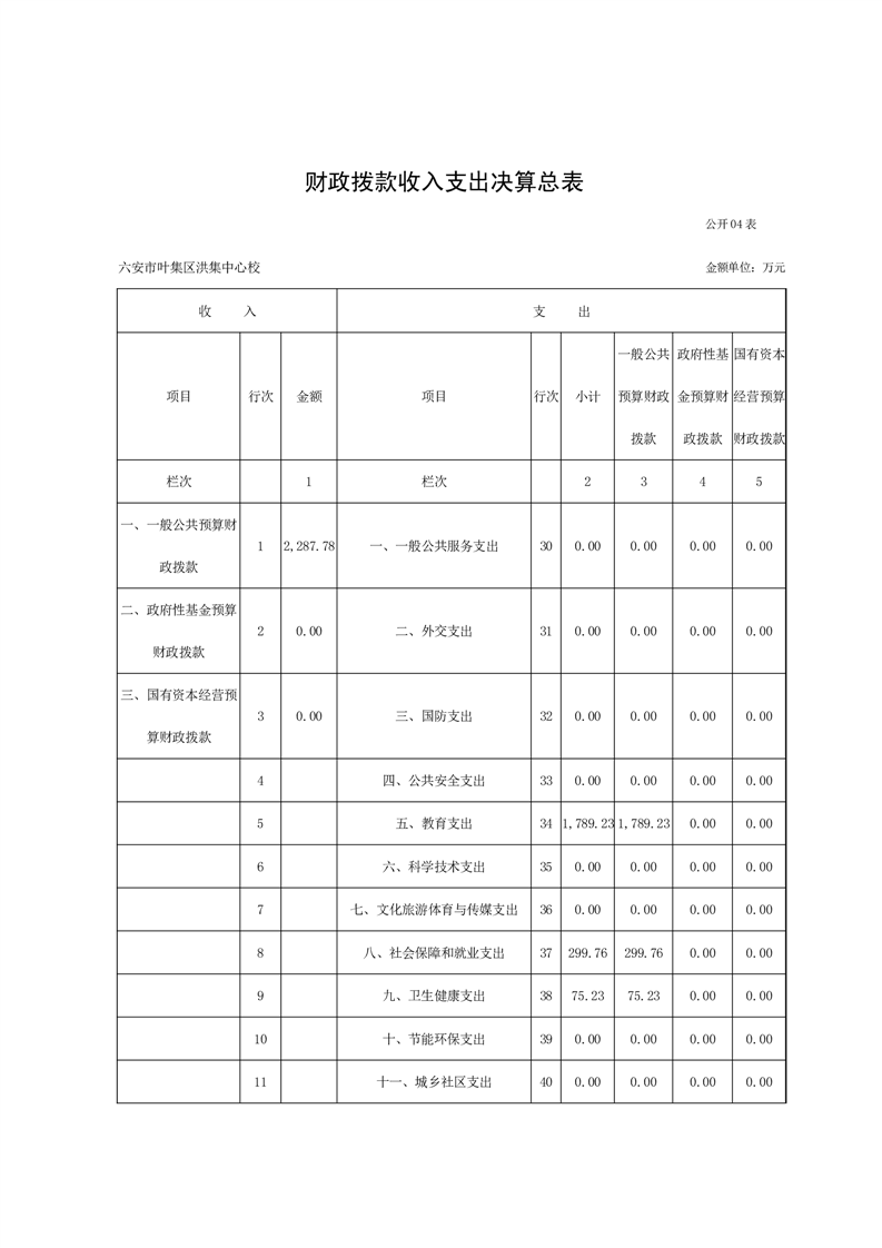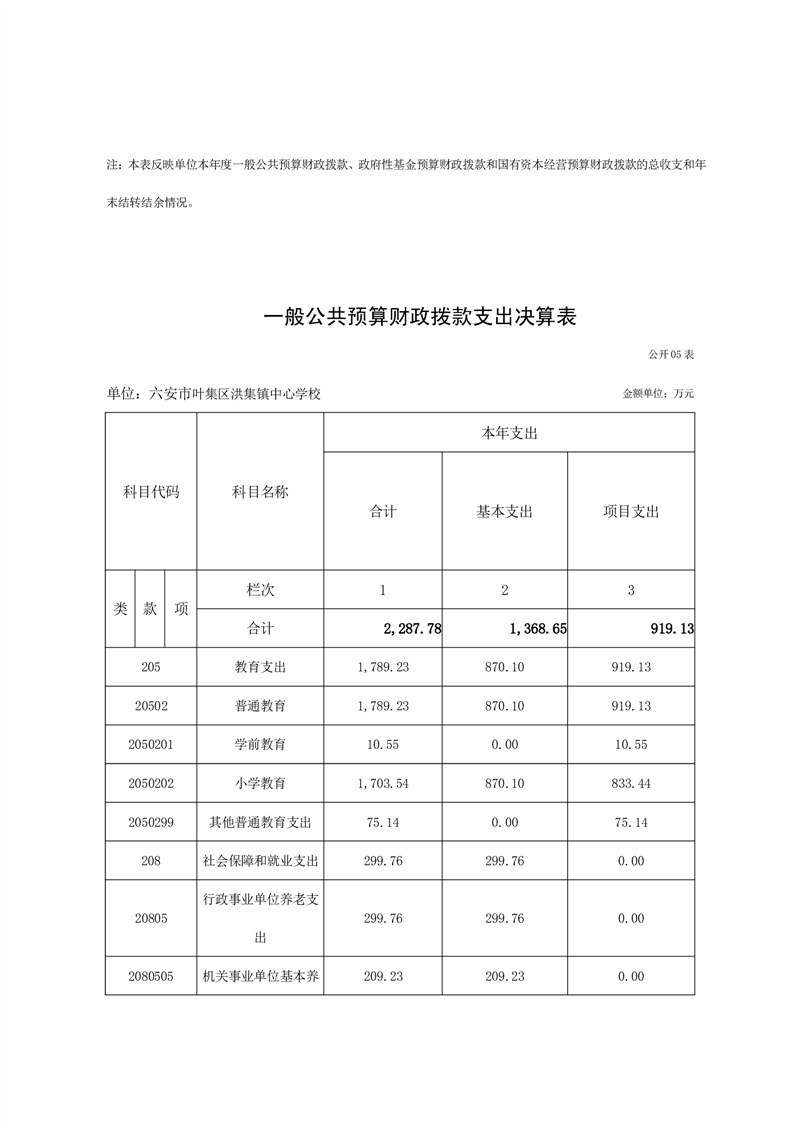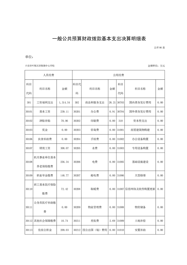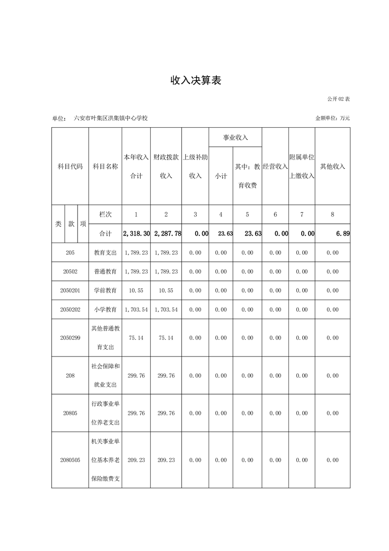 六安市叶集区洪集镇中心学校2023年度单位决算公开