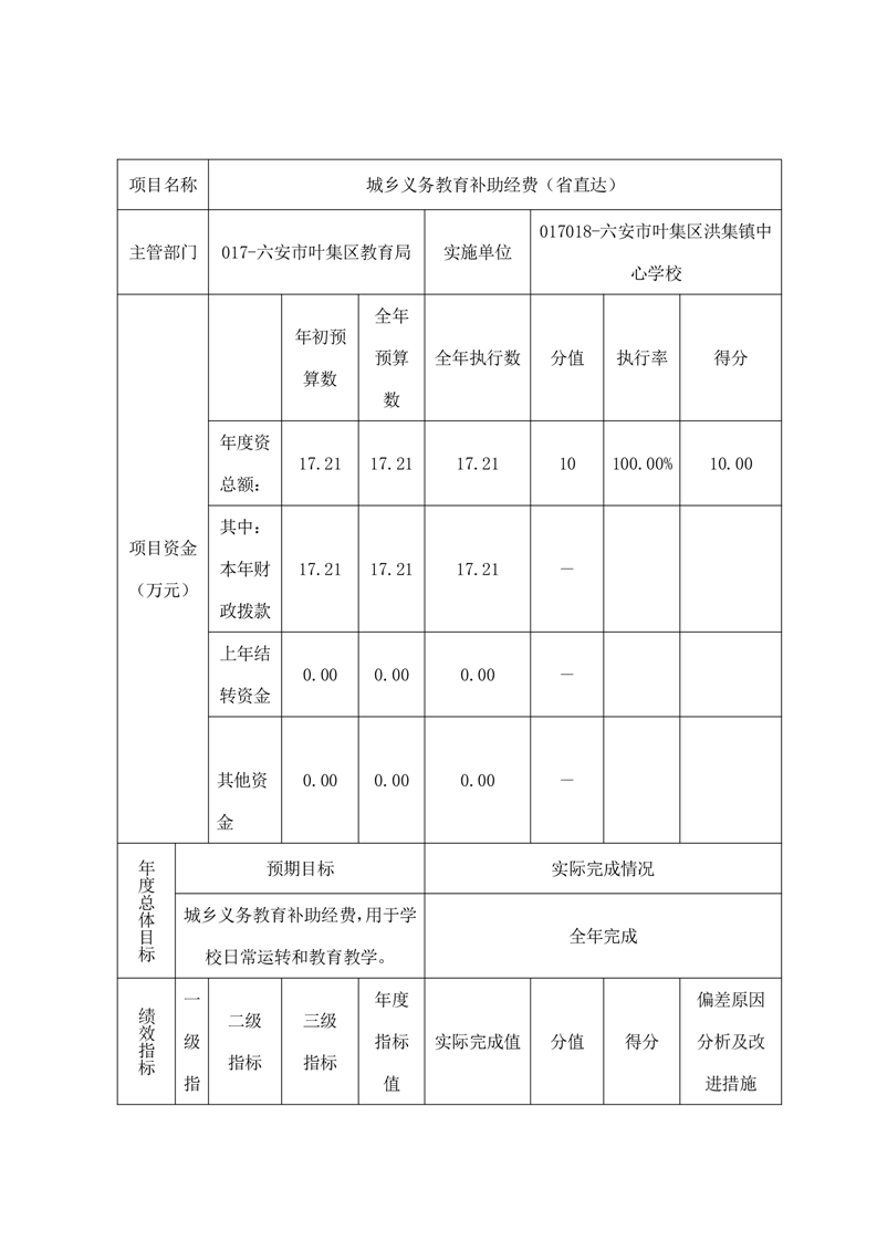 附件2:六安市叶集区洪集镇中心学校项目支出绩效自评表.zip