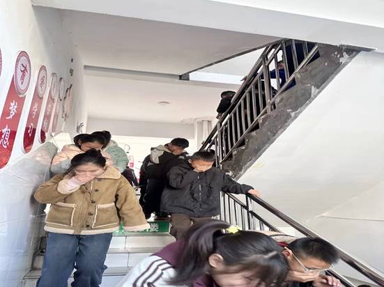 中井然有序,教职工分工明确、各尽其责,疏散顺利。同时希望大