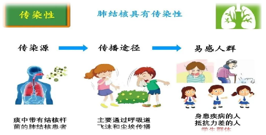 结核病是由结核分枝杆菌引起的慢性呼吸道传染病,主要通过飞沫传播(如患者咳嗽、打喷嚏时,病菌会随飞沫进入空气,健康人吸入后就可能感染)。