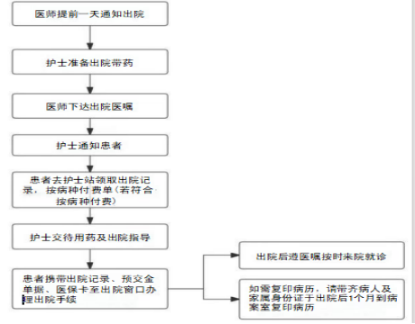 (二)出院事宜:在离院前,病人或病人家属到记账处办理出院手续,方可离院。