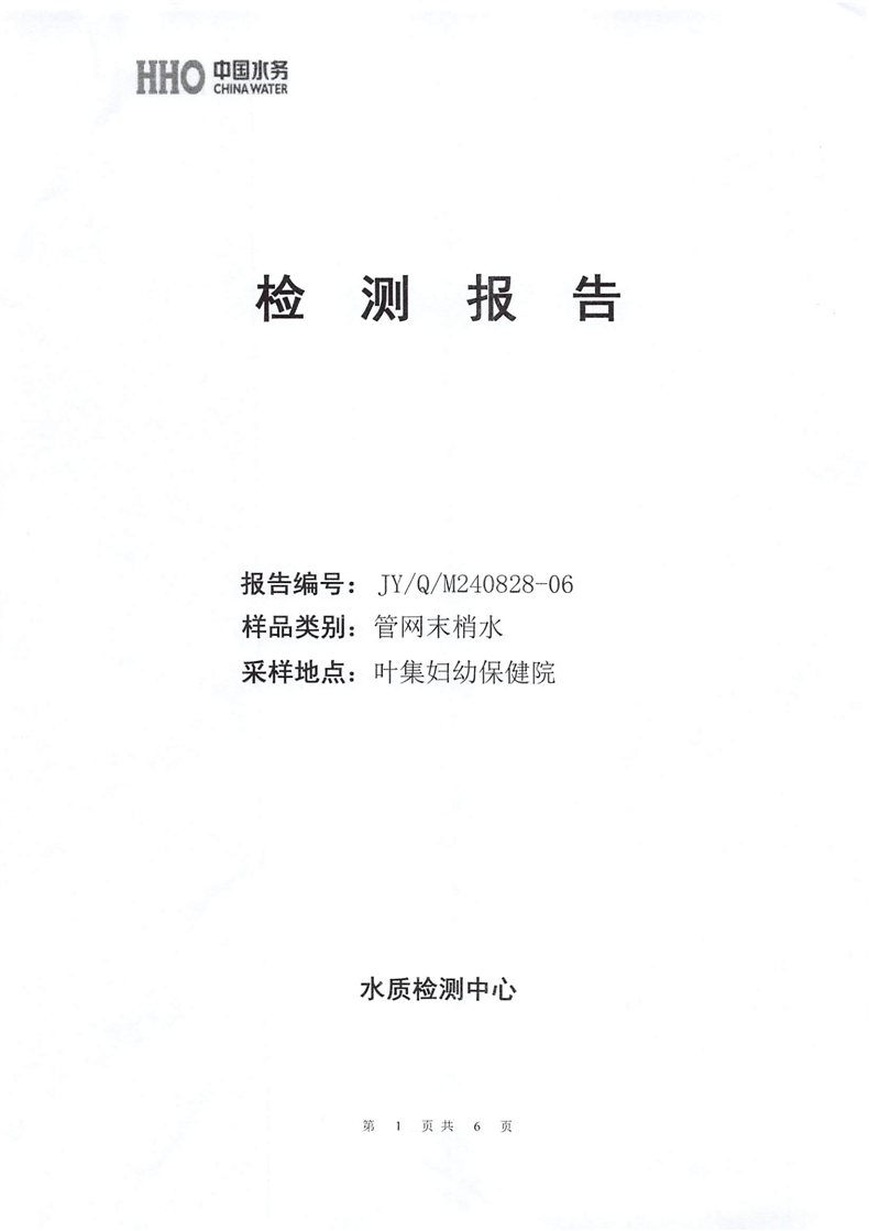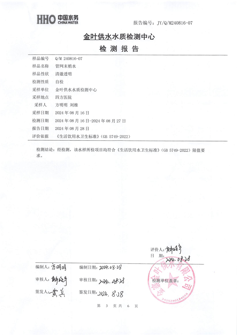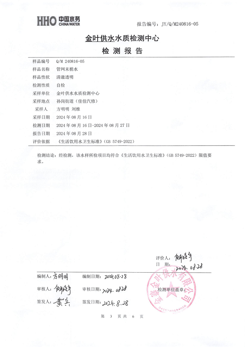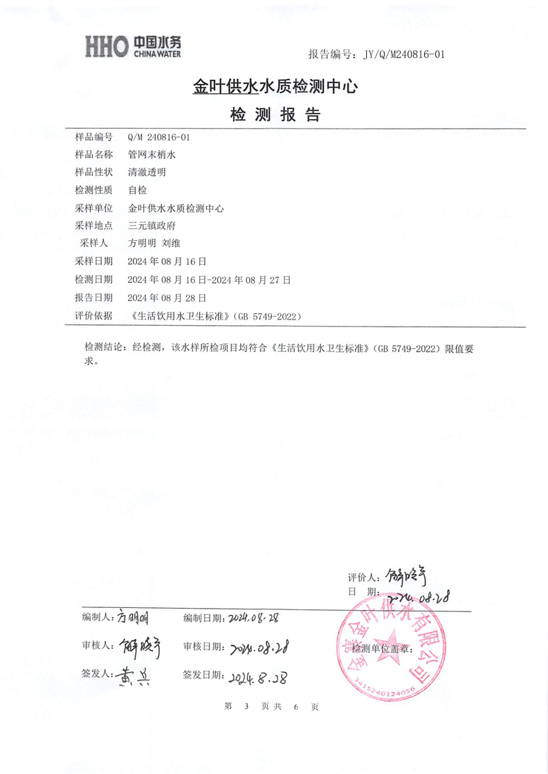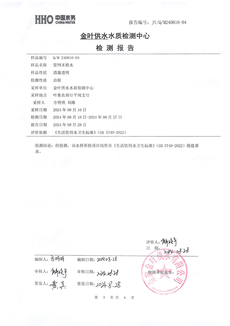 2024年8月份金叶供水叶集末梢水检测报告 |