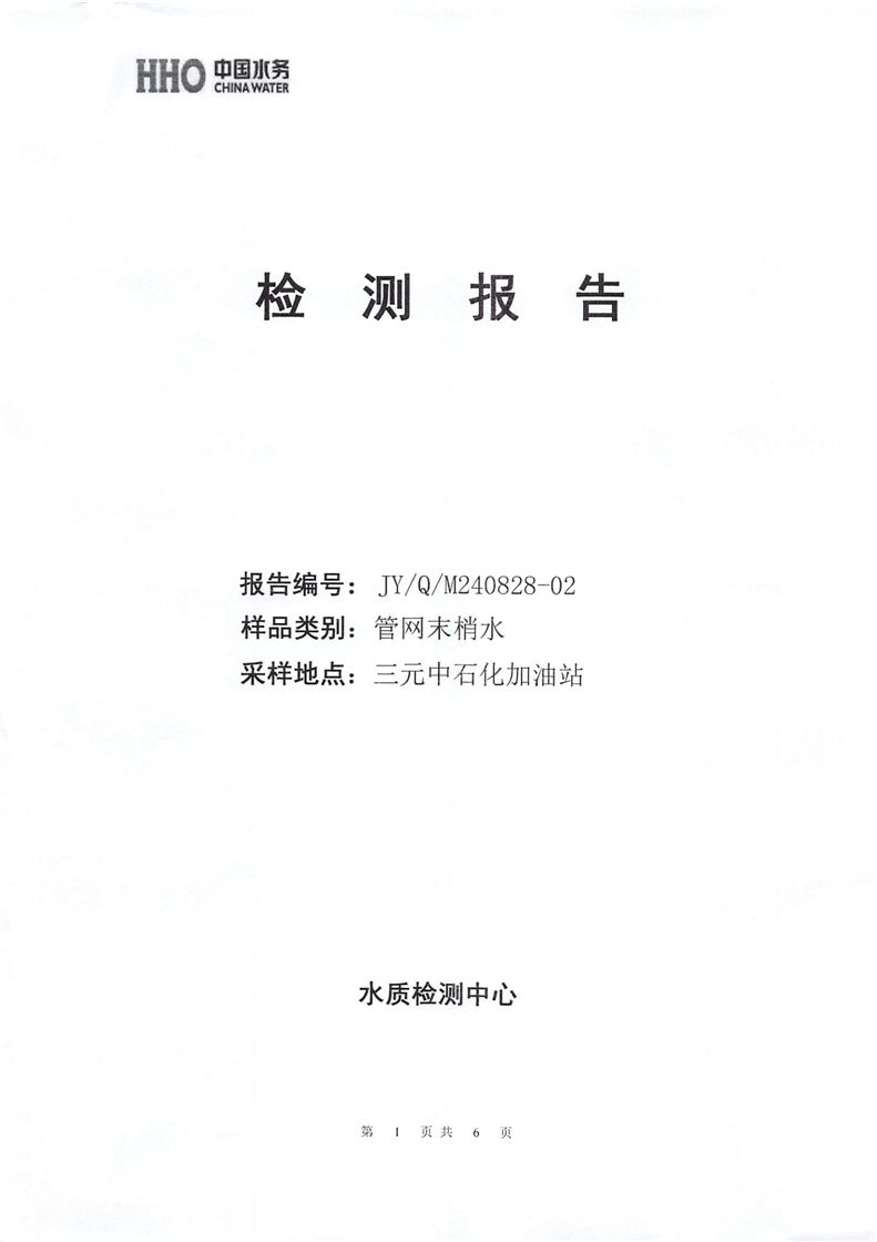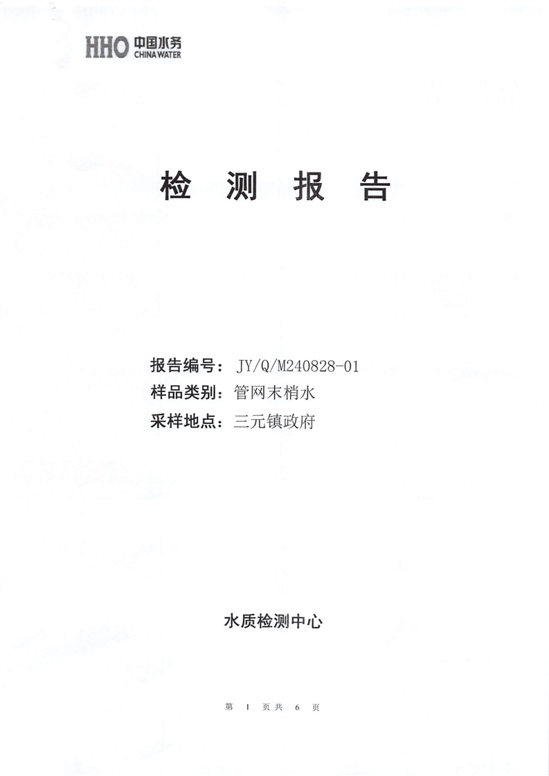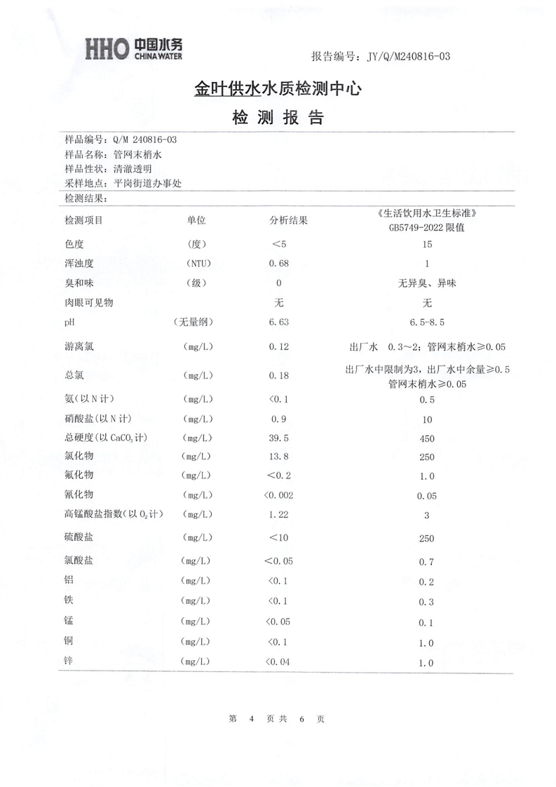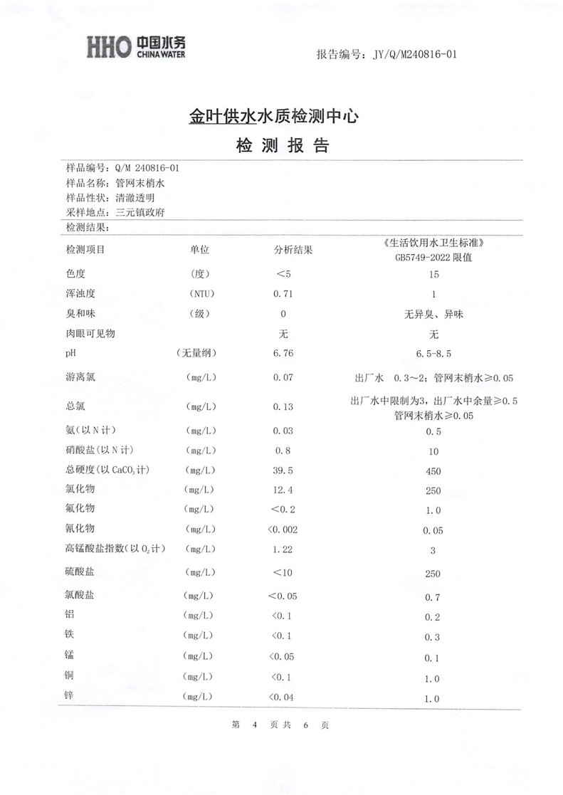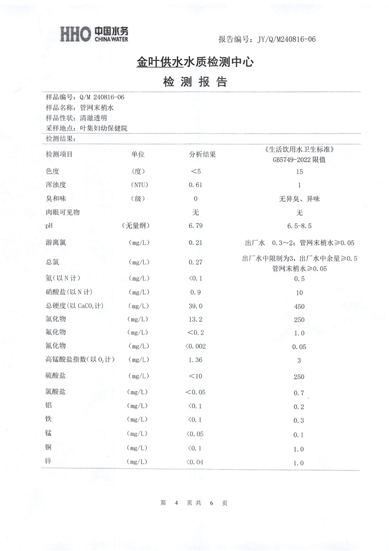2024年8月份金叶供水叶集末梢水检测报告 |