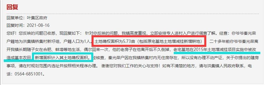 网友:您好!您反映的问题已收悉,现回复如下:首先对您体谅村委会工作难处表示赞赏,在此真诚的邀请您在工作之余多回家乡走走看看。同时针对您提出的土地确权问题,依据现有政策:农村土地承包经营确权对象为农村二轮承包耕地。对于新增的合法耕地,可以由农户自己经营,暂不确定为登记对象。谢谢您对我们工作的关心与支持!如有不清楚的地方,请与洪集镇人民政府联系,电话:0564-6851001。