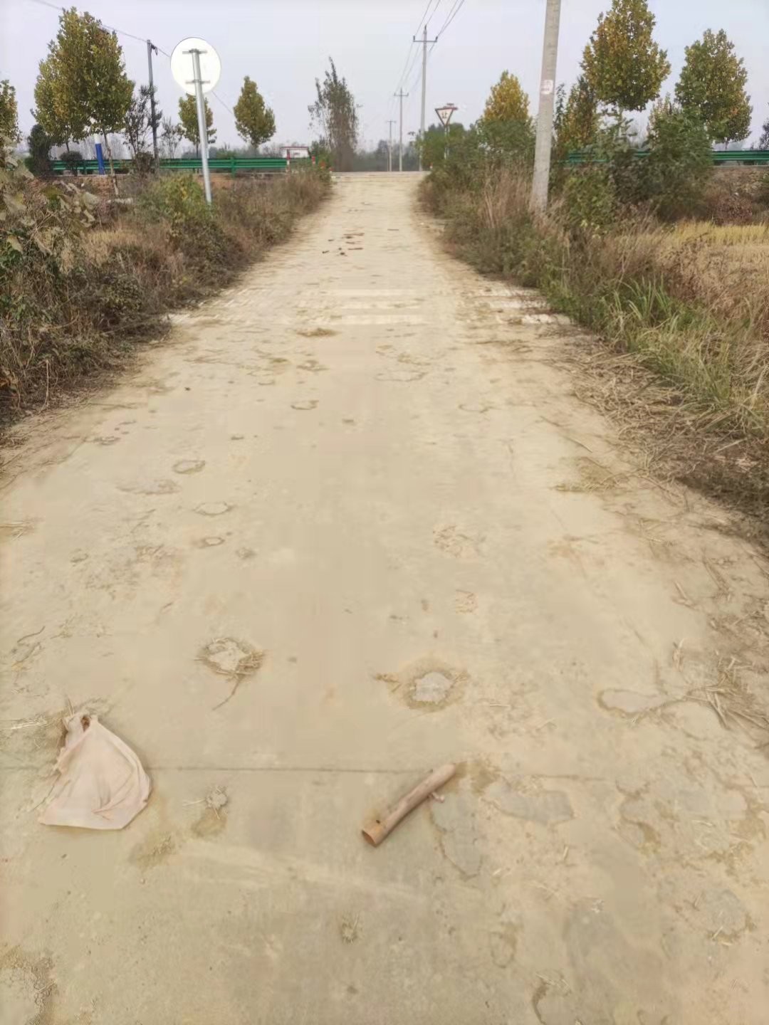 公路上都是种田大户秋收以后收割机留下来的泥巴,他们的稻子收了之后路上的泥巴也就不管了,但这路我们老百姓是天天都要走的,这是晴天还好,走路只是有些颠簸,下雨了全是稀泥巴油子,骑车都能滑倒人……