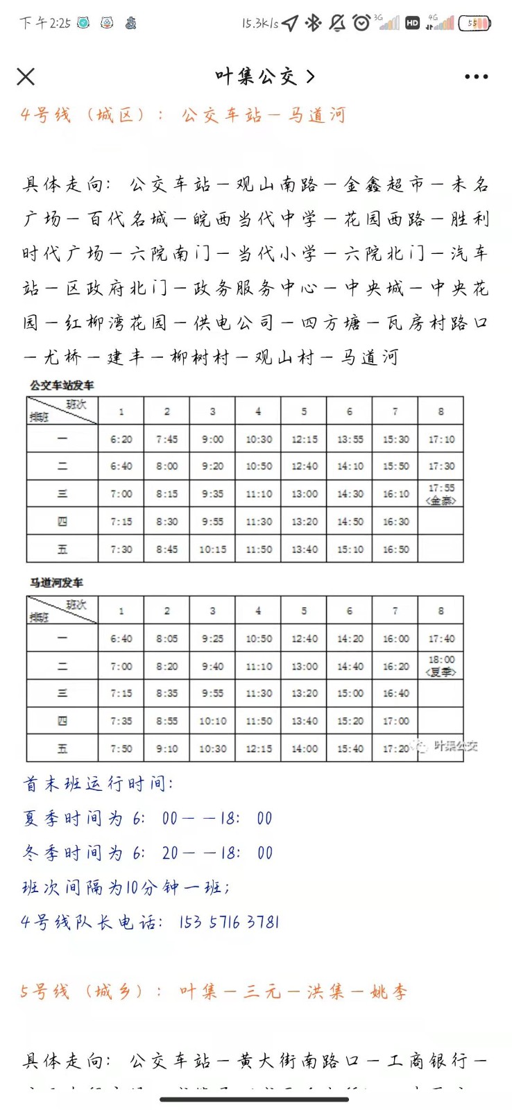 1.为什么在站点扫的官方公交车的路线图没有从终点站到城区的具体走向(我未在公众号上面看见叶集二小东门站);2.为什么那一辆4路公交车在站点有人的情况下不靠边停车(同站台的3路公交车均有靠边停倾向);3.为什么公众号上面会有误导群众的,班次间隔10分钟一班字样,因为不是第一次被4路放鸽子了,但今天确实是急事,又加上外面很冷,所以大着胆子提出了疑虑。