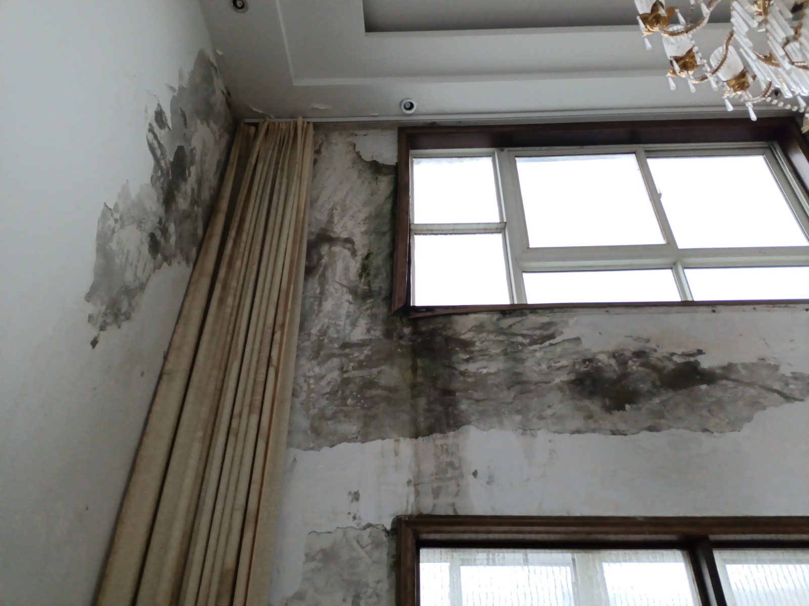 这些年爸妈一直在外地打工,很少回来。我和弟弟也一直在外地上学,近几年我因为生了大病不能外出住在小区。住的时候才发现,小区建的时候楼顶防水没做好,一到下雨,两个阳台、两个太阳能平台、全部往下渗水。无论是六楼还是阁楼房间的墙皮全部泡水脱落,家具也泡坏了。尤其是客厅的顶楼,一下雨,水沿着墙壁往下流得屋里都是。门和窗都泡坏了。向物业反应,他们说这不是他们的事。